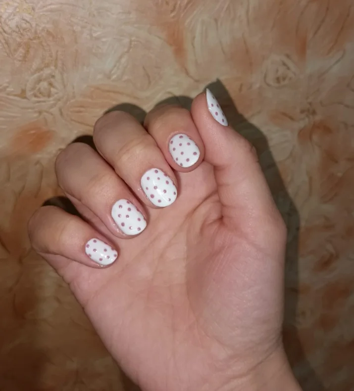 Классный лак,меняет цвет,на улице в холоде фиолетовая,чуть тепло розовая,а дома в тепле бесцветная