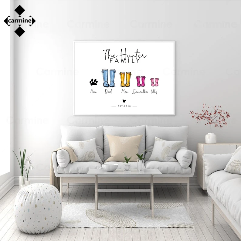Индивидуальный семейный принт, персонализированный семейный подарок, персонализированный Настенный декор с именем семьи, Забавный мультяшный настенный плакат для украшения дома