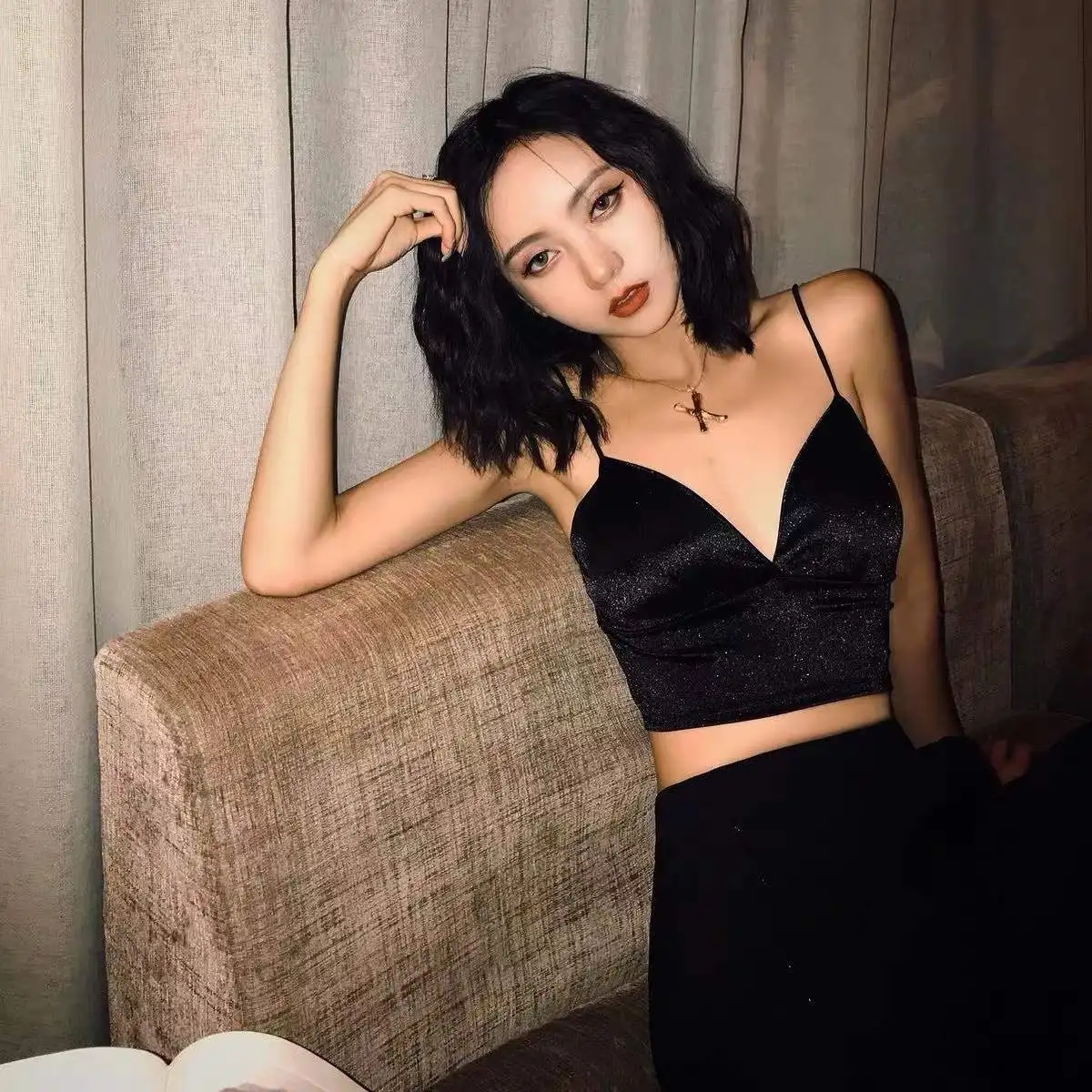 мода атласные кроп топ топы женские ультра тонкий Глубокий V майки ...