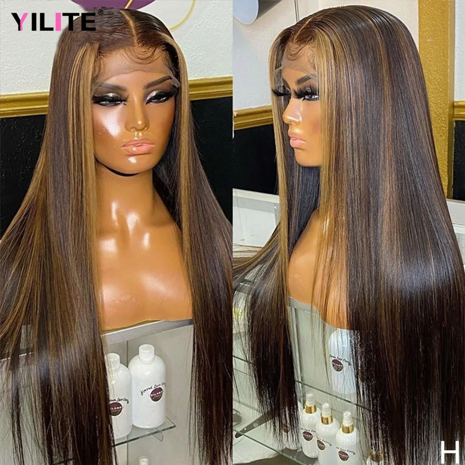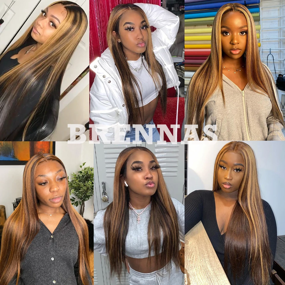 Выделите парик человеческих волос 30 дюймов прямые синтетические волосы Синтетические волосы на кружеве парик с эффектом деграде (переход от темного к Цветной прямые парики из натуральных волос на кружевной основе #4/27 Цветной Кружева Закрытие парик