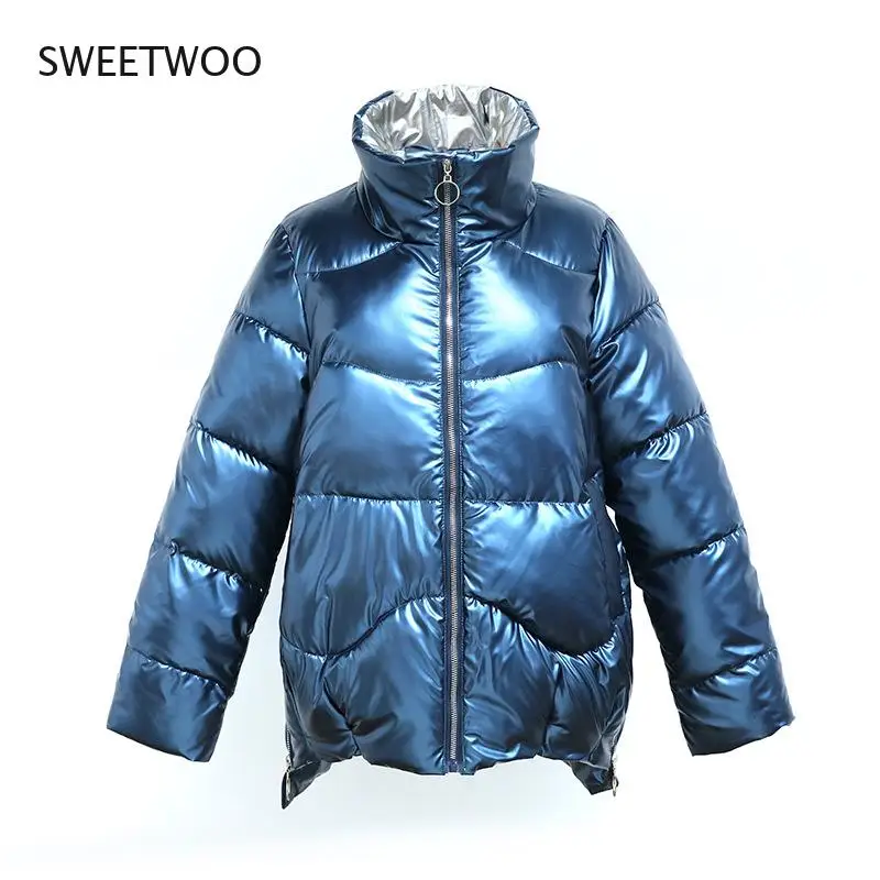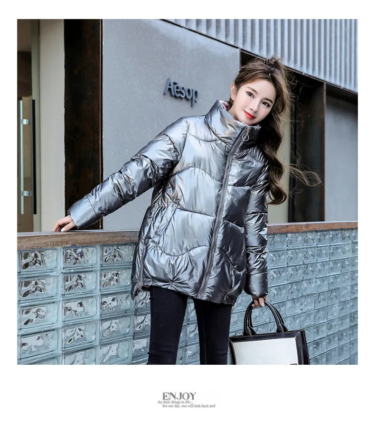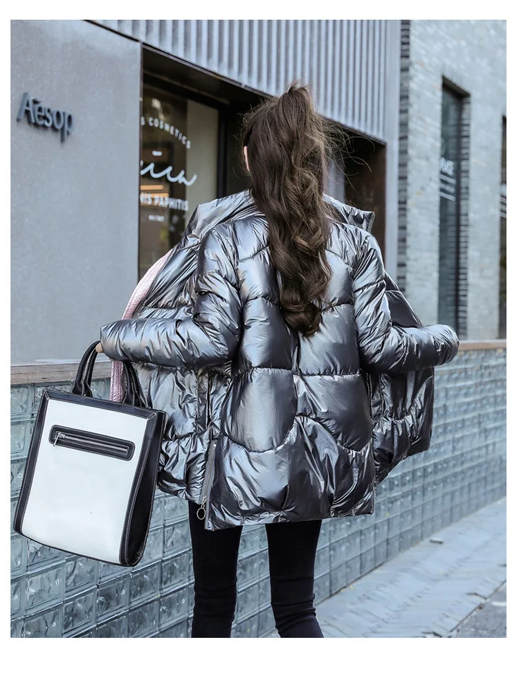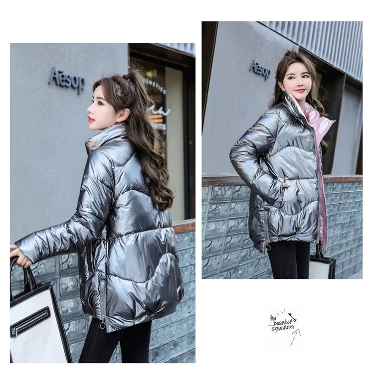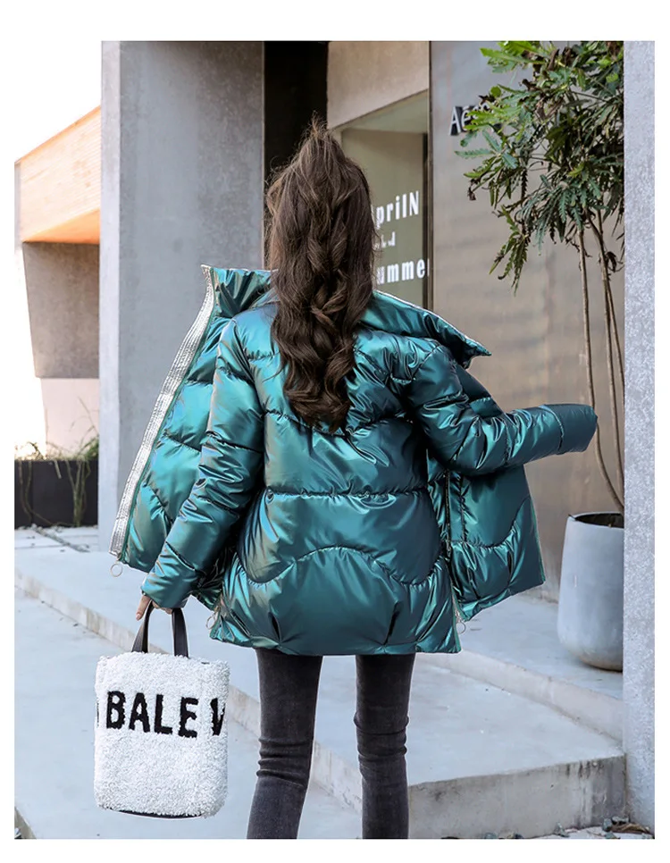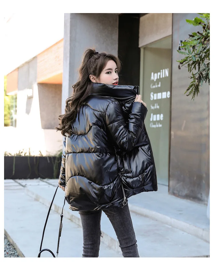 Новинка 2021, женская зимняя куртка, глянцевая парка, пуховая хлопковая куртка, теплая Повседневная парка с хлопковой подкладкой, зимняя одежда