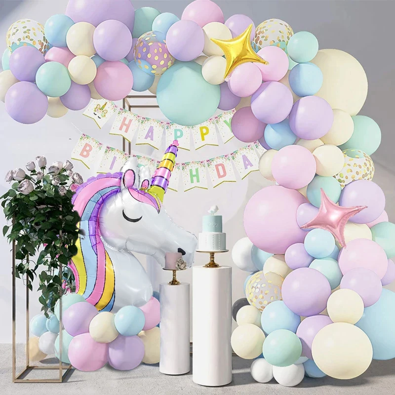 147 шт., макарон, единорог, девочка, с днем рождения, воздушный шар, арка, детский душ, блеск, конфетти, большие гелиевые фольгированные воздушные шары, набор украшений