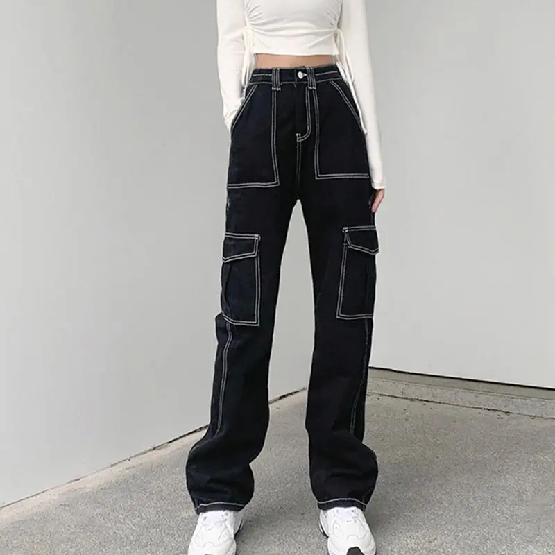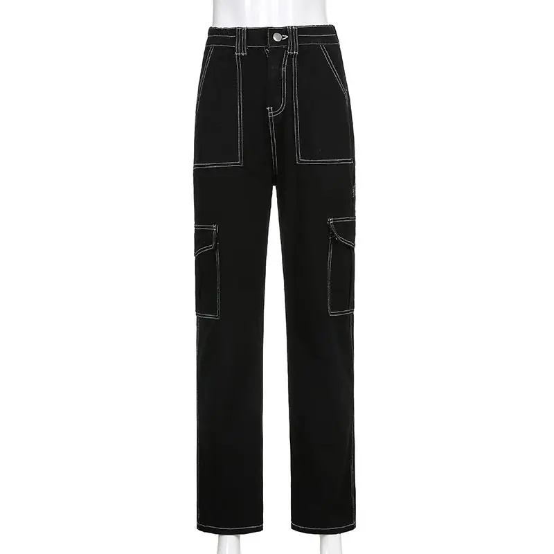 Прямые брюки, джинсы, женские длинные брюки-карго, джинсовые брюки, уличная одежда, женские черные леггинсы