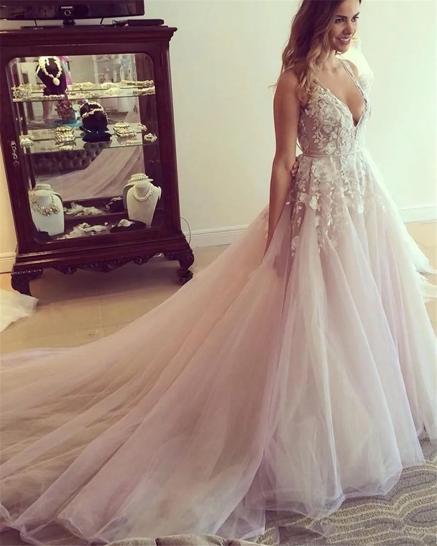 Женское свадебное платье, с V-образным вырезом и открытой спиной, с...