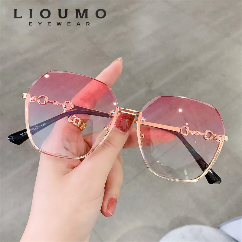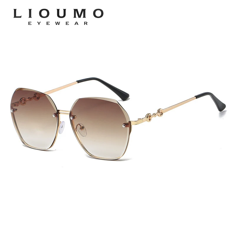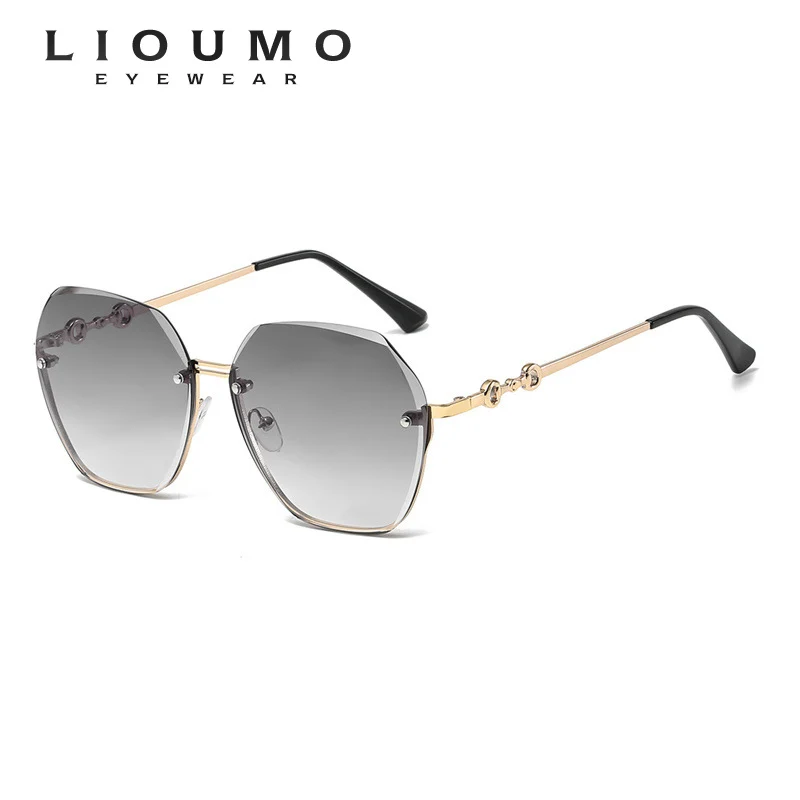 Солнцезащитные очки LIOUMO без оправы для мужчин и женщин, многогранные винтажные аксессуары для вождения, с градиентными линзами
