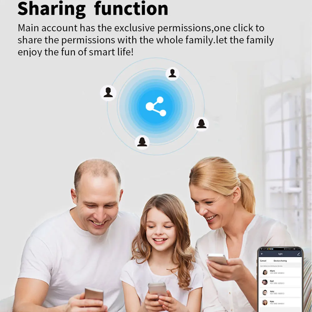 Основная учетная запись имеет эксклюзивные разрешения, один клик, чтобы поделиться разрешениями со всей семьей. Позвольте семье насладиться веселой умной жизнью!