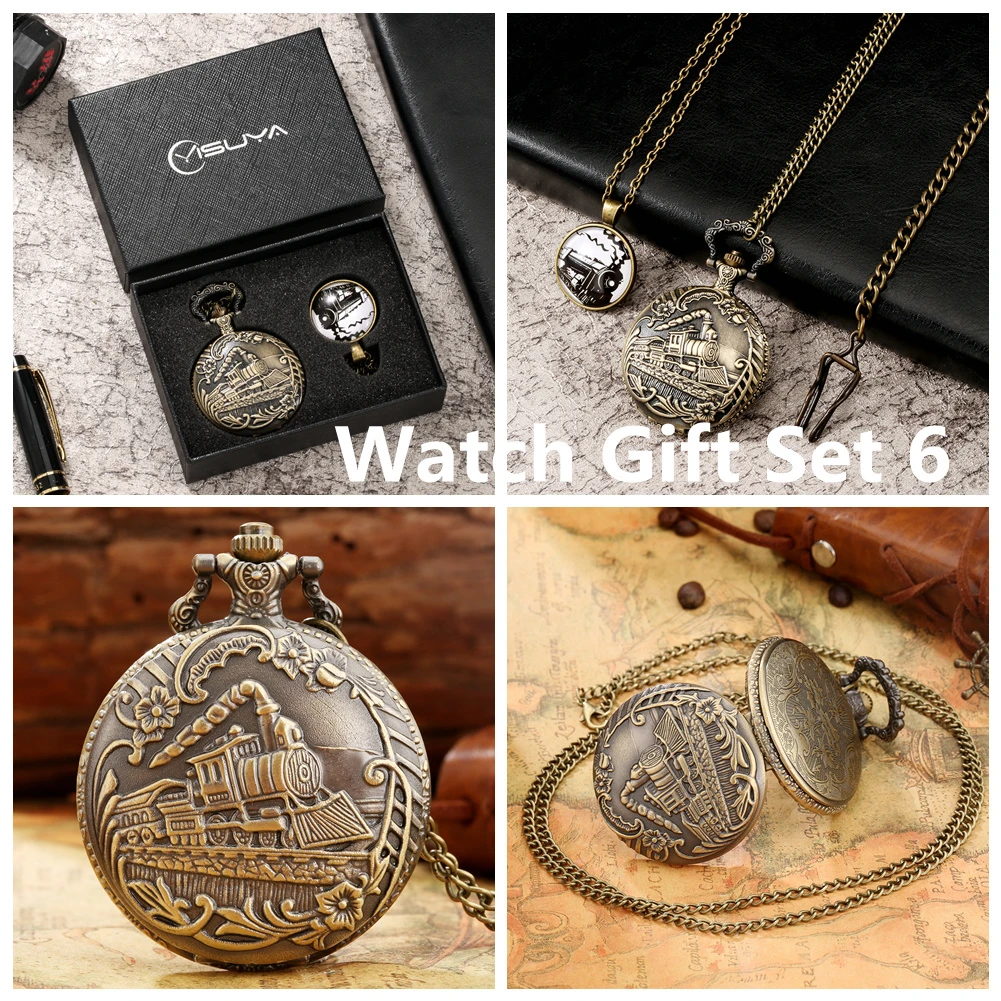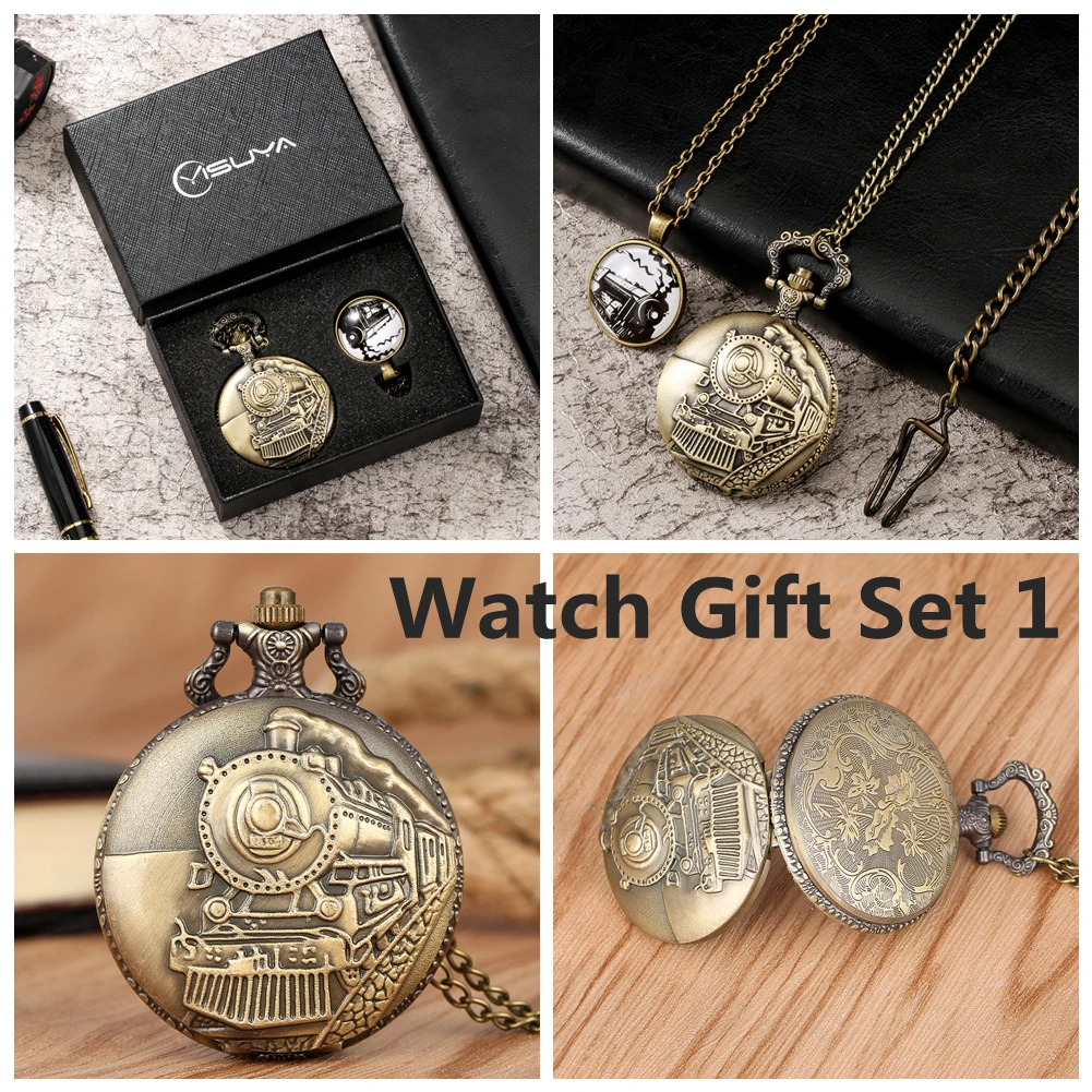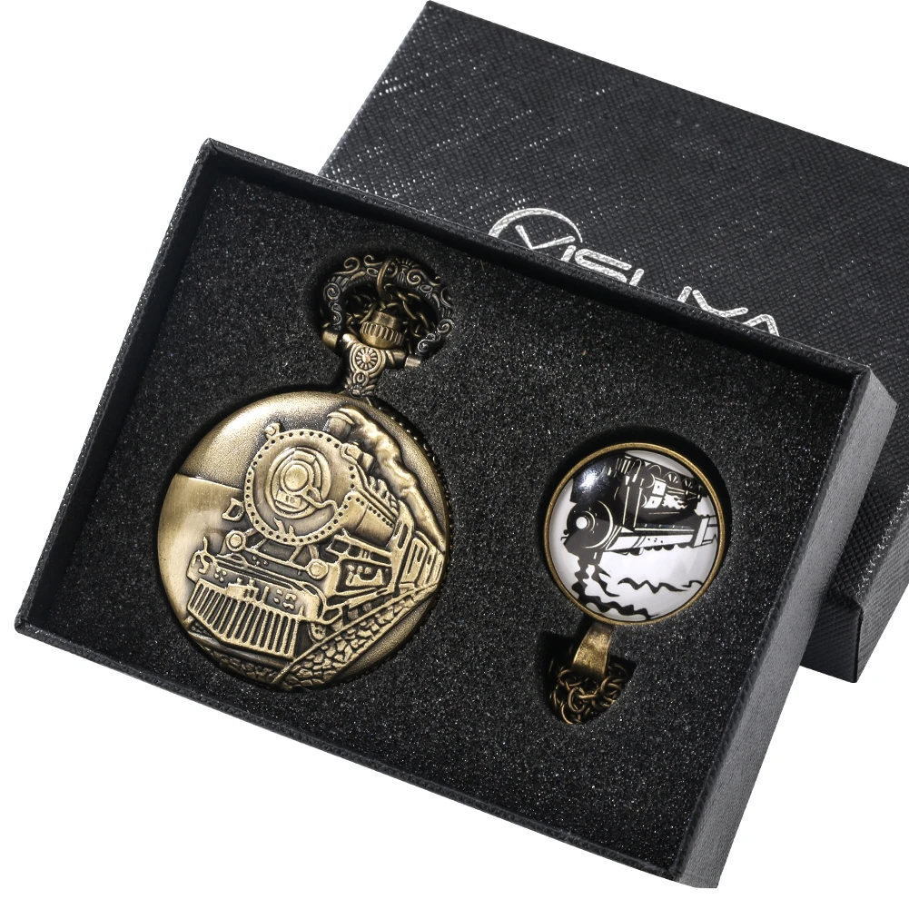 Винтажные карманные часы с подвеской и ожерельем, набор с полым бронзовым поездом, кварцевые часы, античный брелок, часы на цепочке, подарок для мужчин и женщин