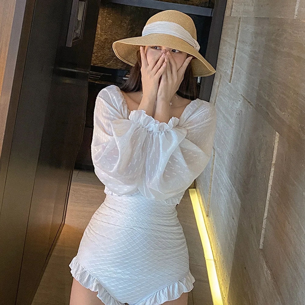 Однотонный женский купальник vigoкейси 2022, сексуальный цельный купальник, женский купальный костюм в Корейском стиле с длинным рукавом, монокини с высокой талией и вырезами
