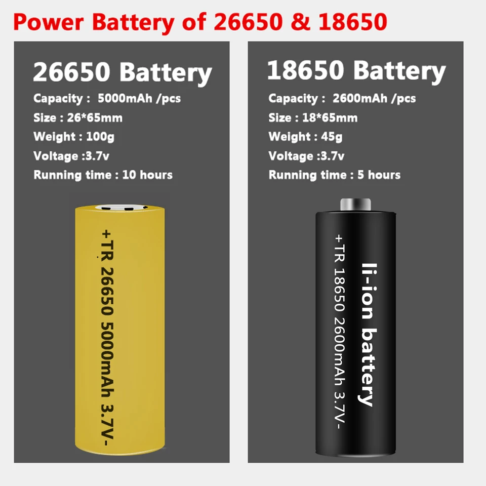 Режим переключения: сильный светильник-средний Светильник-низкий светильник-стробоскопическая вспышка-SOS, нажмите и удерживайте любую позицию, чтобы выключитьМатериал корпуса: алюминиевый сплавУровень водонепроницаемости: IPX-5Мощность: 2x18650 или 2x26650 батареиЦвет излучения: белый светильникРежим масштабирования: телескопический зум