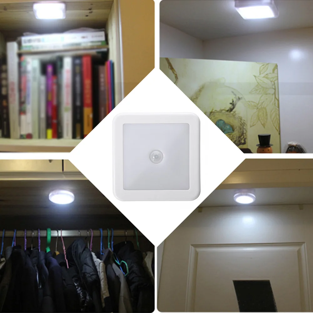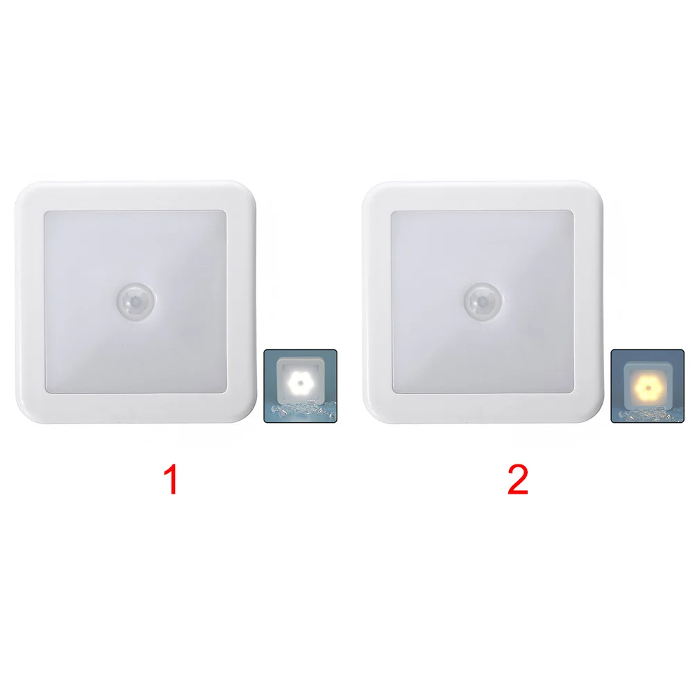 Лампа для шкафа на батарейках, ночник для спальни, Квадратный светодиодный светильник с пассивным ИК датчиком движения, автоматическое выключение, умное беспроводное освещение для лестницы