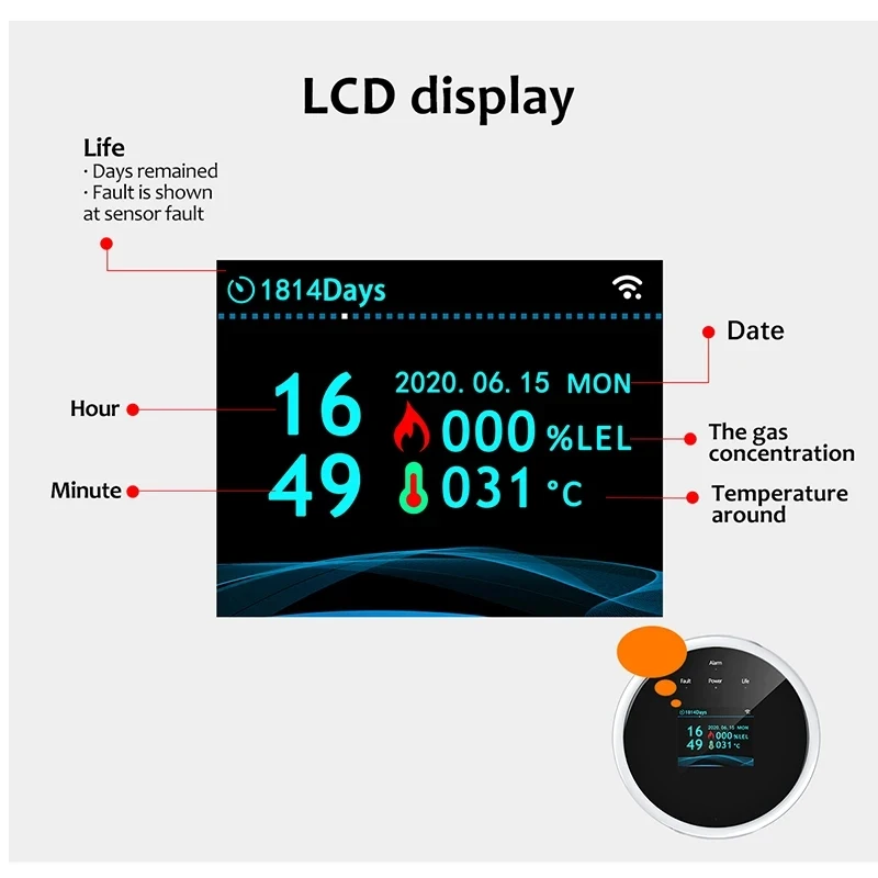 3. Высокая точность: есть ЖК-экран, который отображает точные показания газа в реальном времени, так что вы знаете точную концентрацию газа в воздухе вашего дома в любое время.