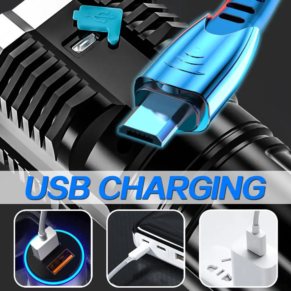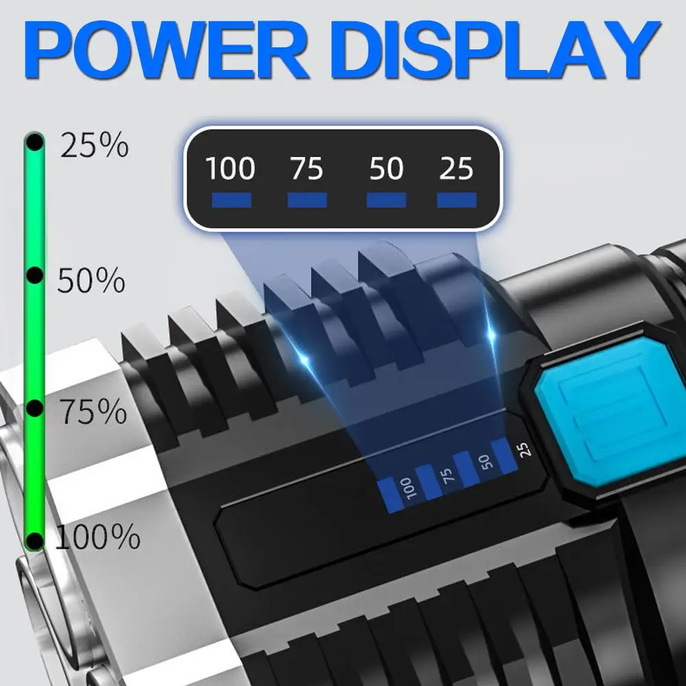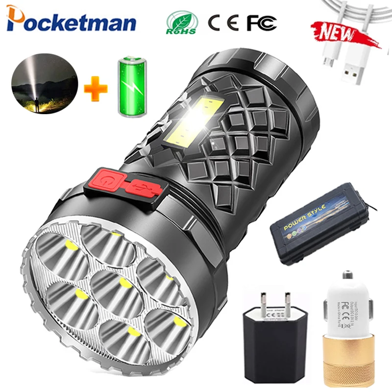 Суперъяркий фонарик, перезаряжаемый наружный Многофункциональный светодиодный фонарик, боковой фонарь, точесветильник светильник дальнего действия, дисплей с батареей, светильник ильник