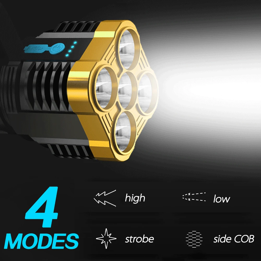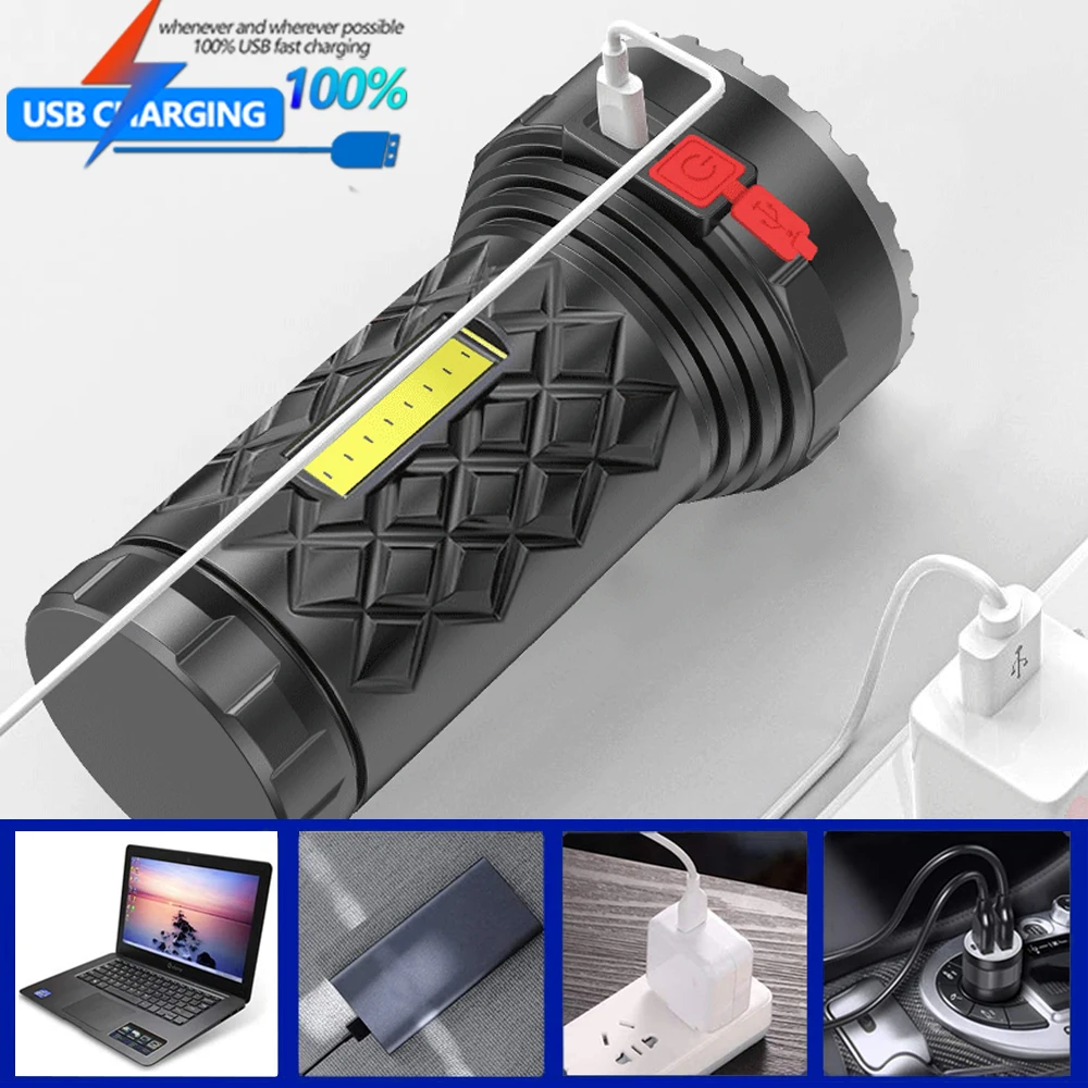 Супер яркий светильник для вспышки, перезаряжаемый уличный Многофункциональный светодиодный фонарь, боковой светильник, точечный светильник с большим диапазоном, дисплей батареи, COB светильник