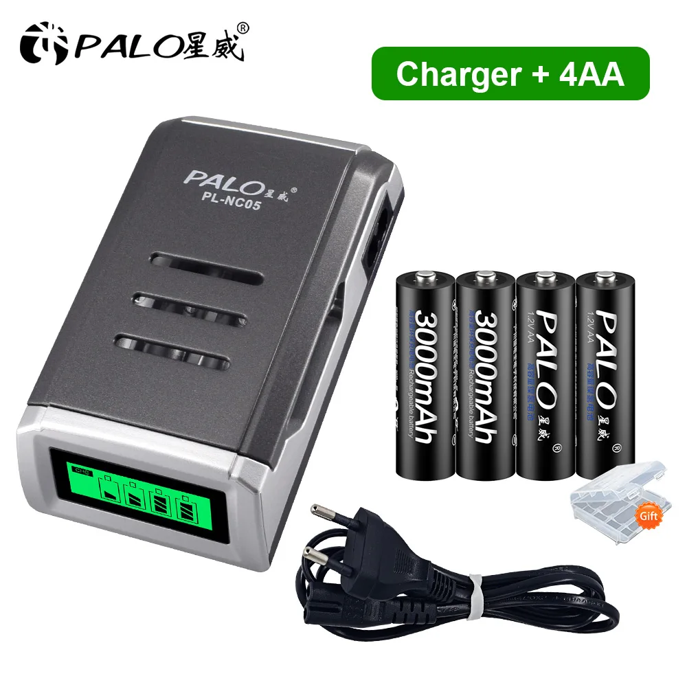 Аккумуляторы PALO AA 3000 мА ч + 1,2 в, 1100 мА ч, с умным зарядн...