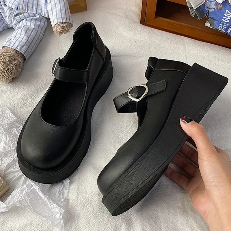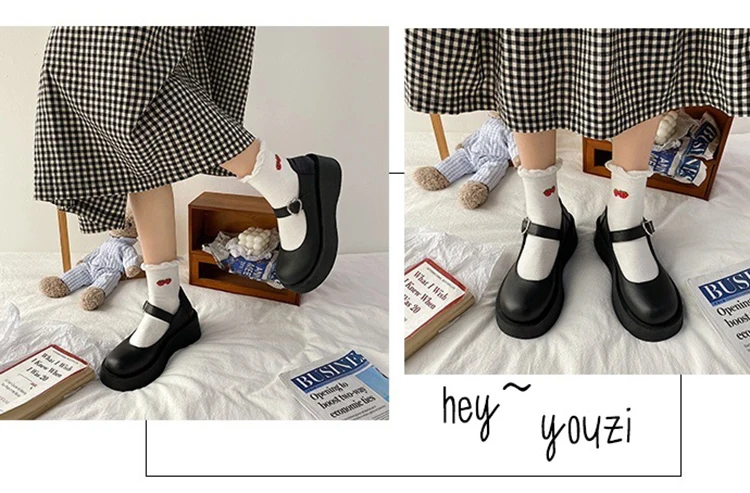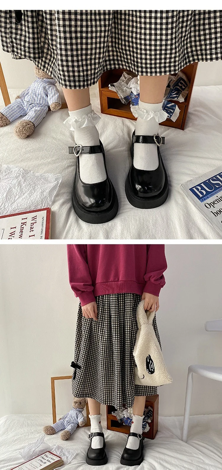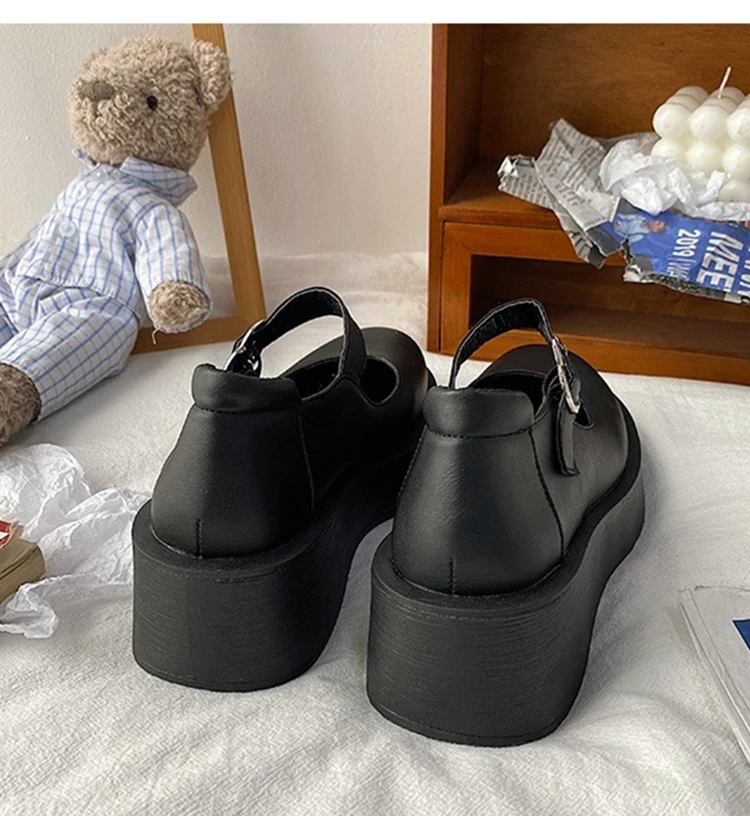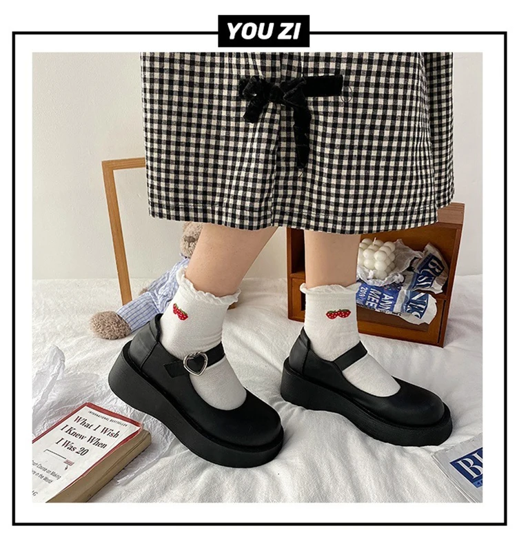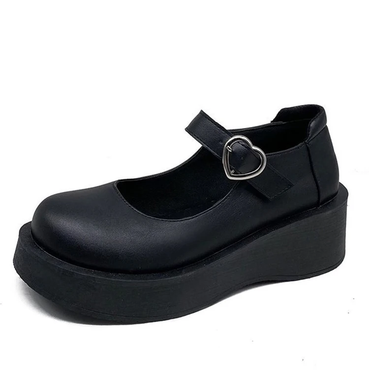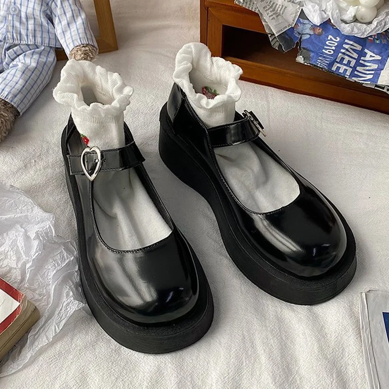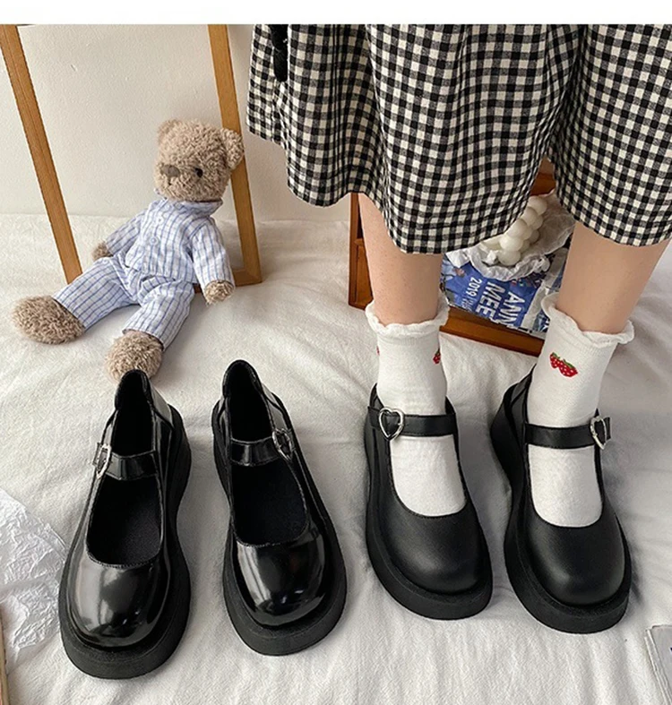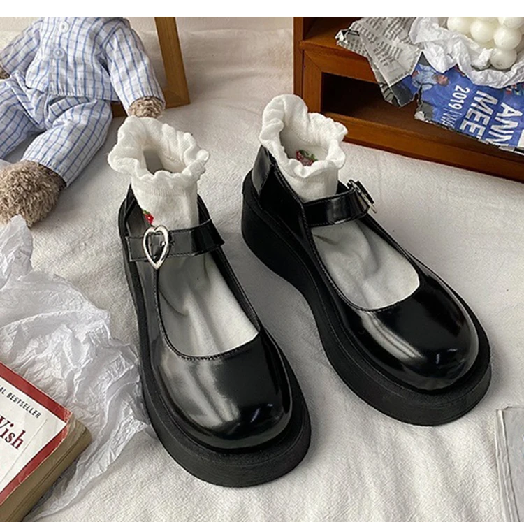 Туфли Мэри Джейн женские ретро милые толстые ботинки Лолита ботинки в форме сердца женские туфли на платформе в японском стиле черные