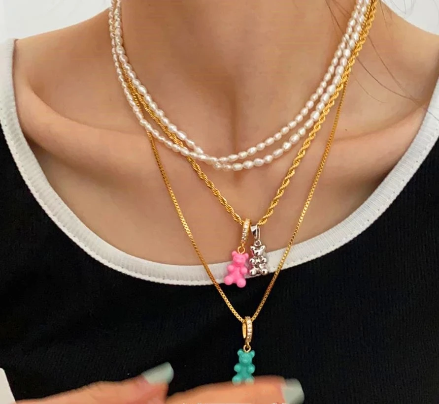 Ожерелье-чокер женское с жемчужинами и кулоном в виде мишки