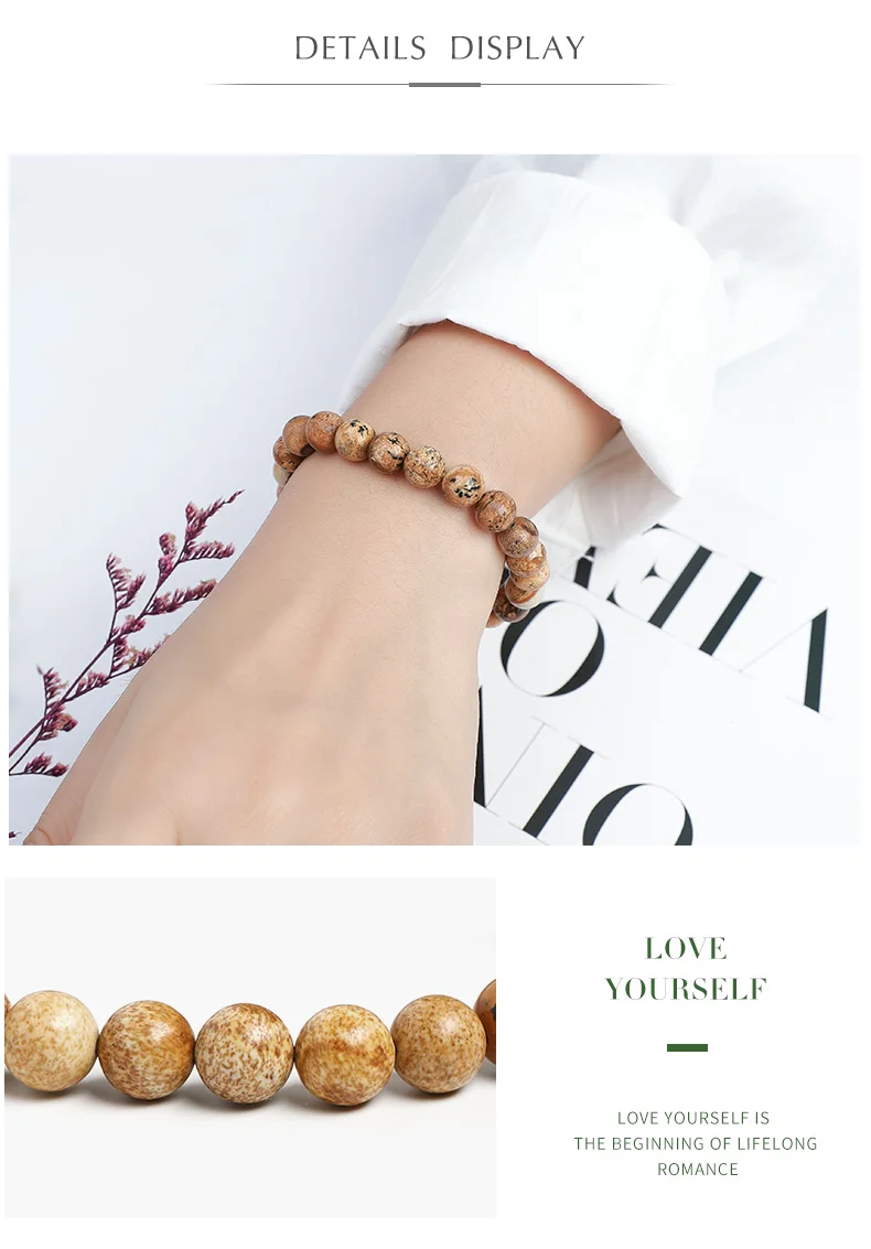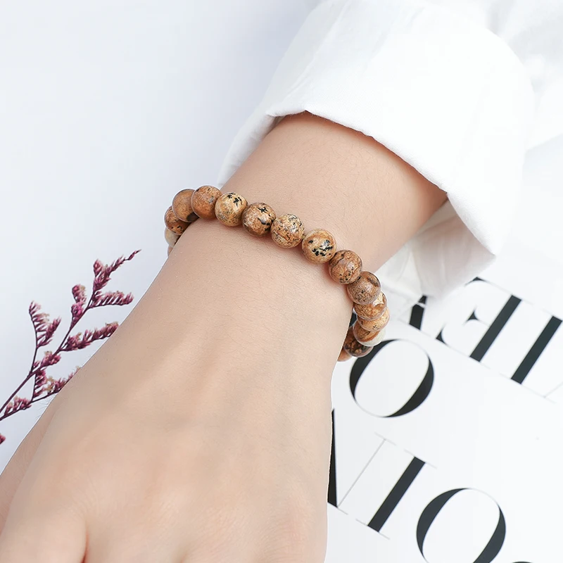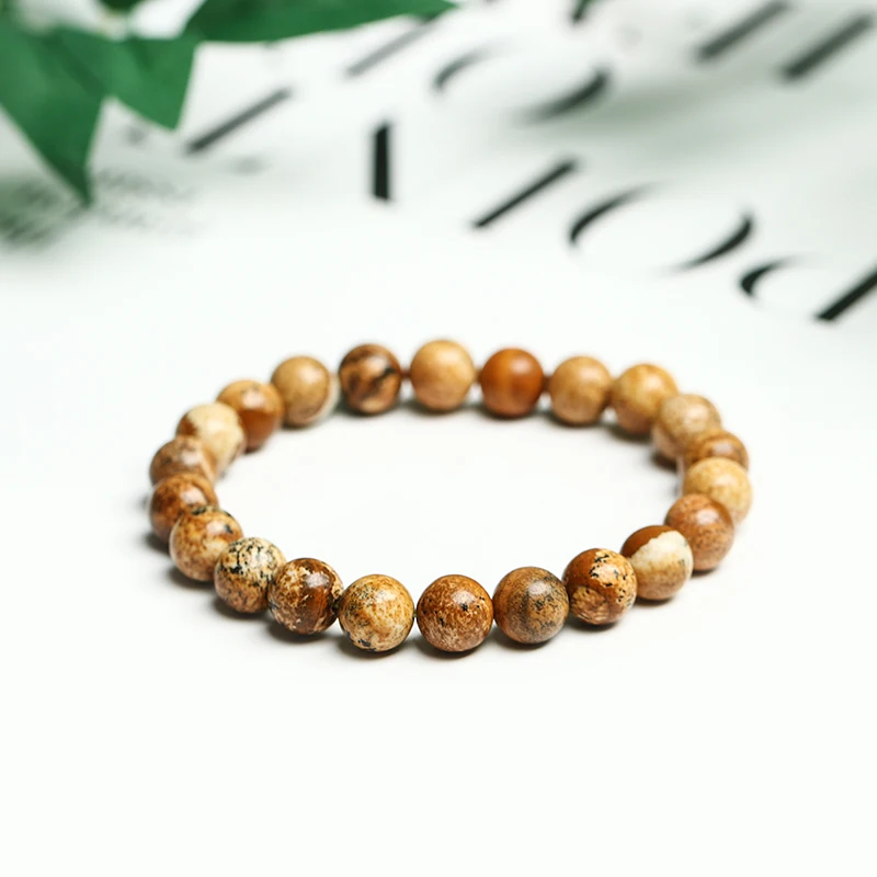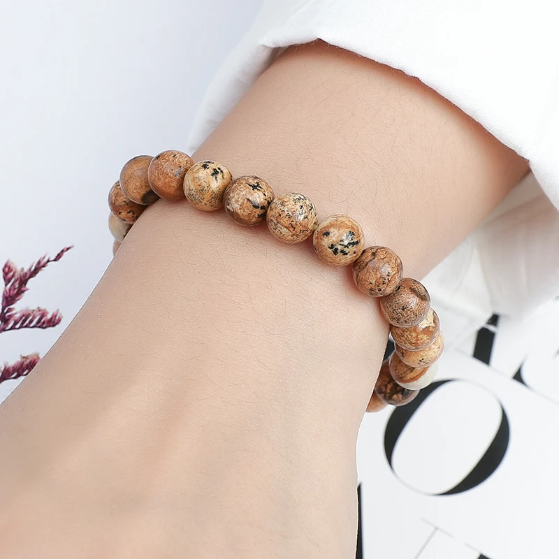 Браслет JD из натурального камня Jasper для женщин и мужчин, эластичная веревка 8 мм, круглые бусины, оптовая продажа