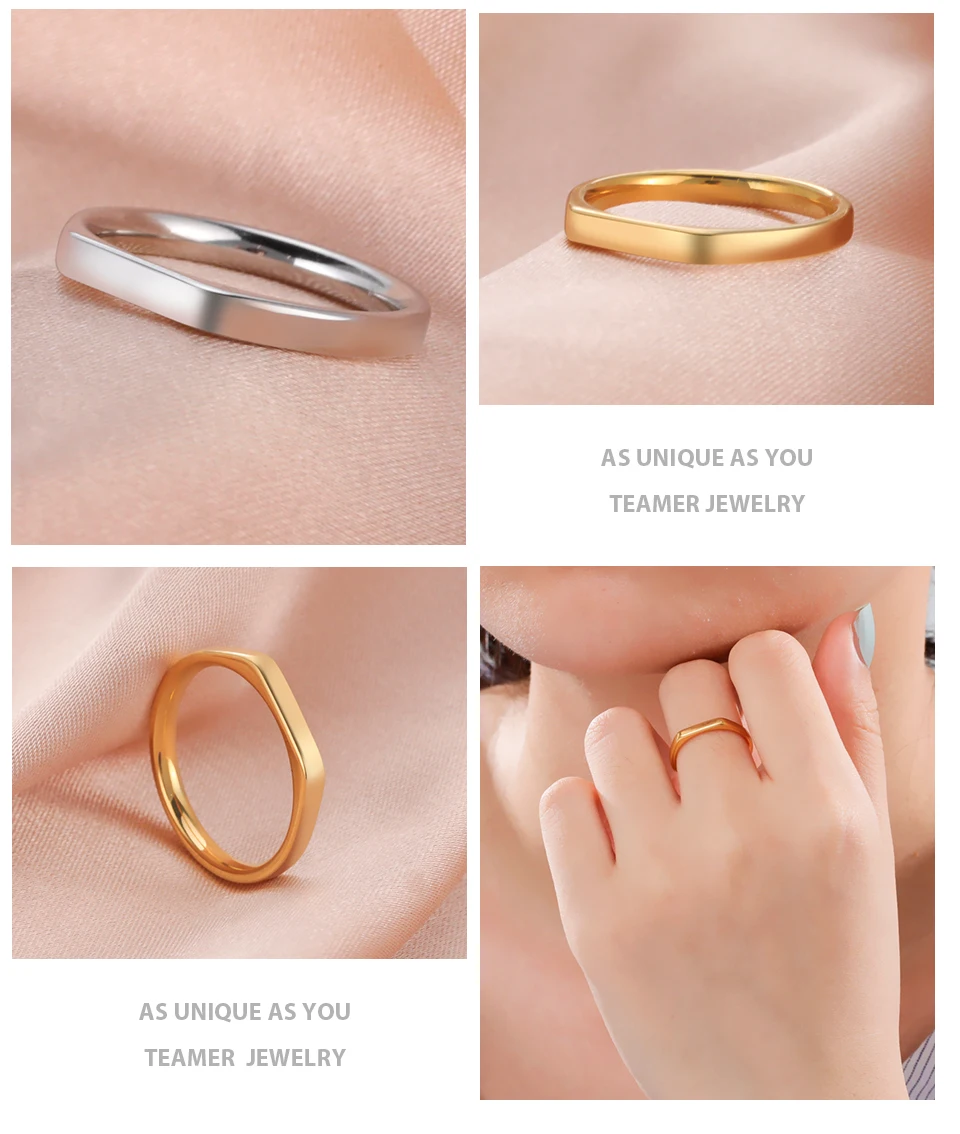 Teamer простые геометрические кольца для мужчин и женщин, Золотое кольцо из нержавеющей стали, корейское минималистичное обручальное ювелирное изделие для пары