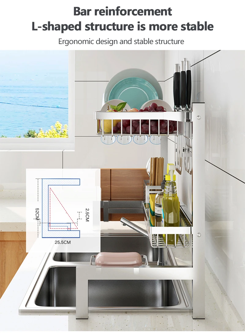 Полка для посуды из нержавеющей стали, многофункциональная, органай...