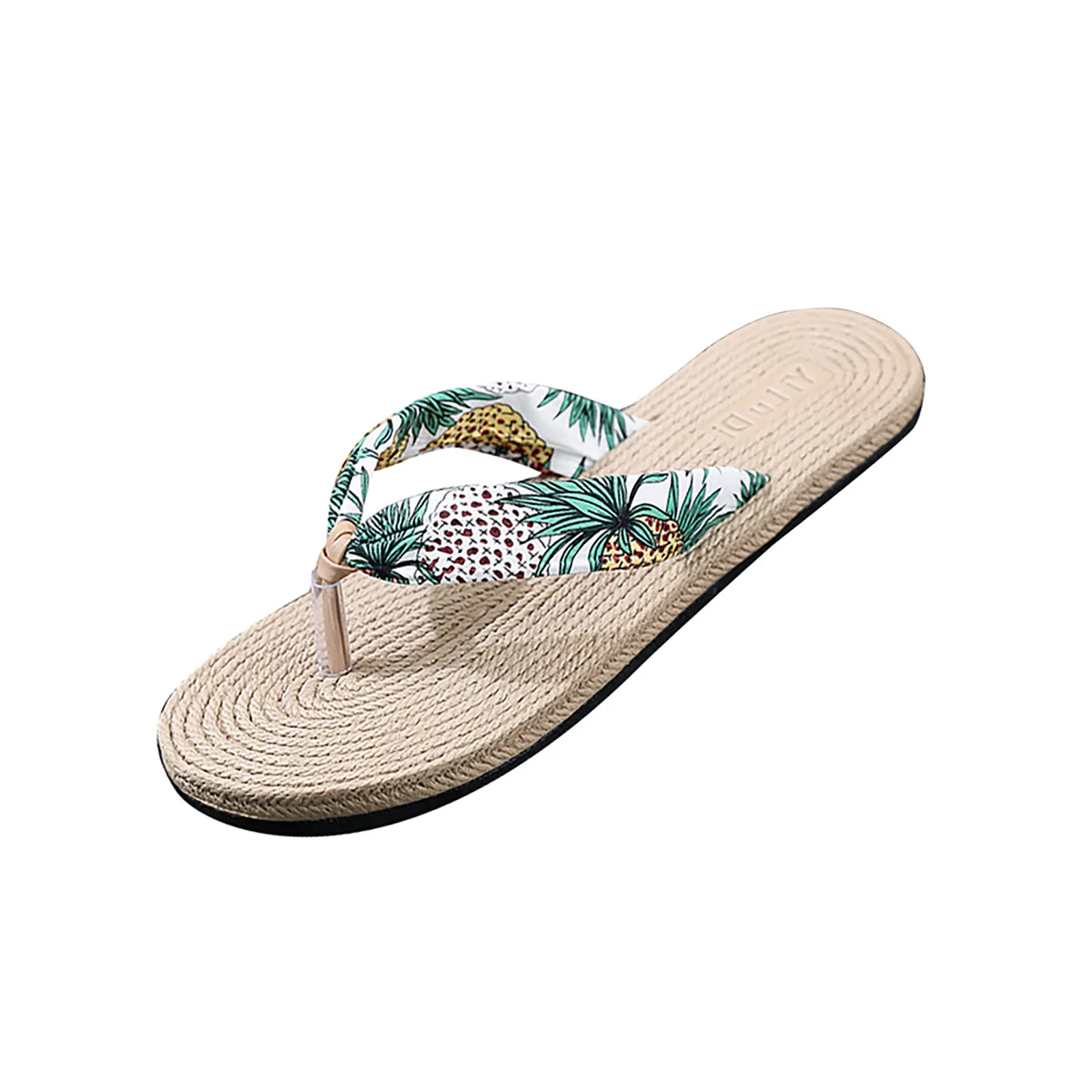 Женские повседневные тапочки из пенькового шелка с ремешком на плоской подошве; Пластиковые слипоны; Пляжная обувь для прогулок