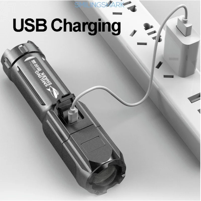 Многофункциональная яркая светодиодная вспышка с питанием от аккумулятора, мощсветильник Перезаряжаемый USB фонарь с сильной фокусировкой, фонарь с зумом и ксеноновыми силами