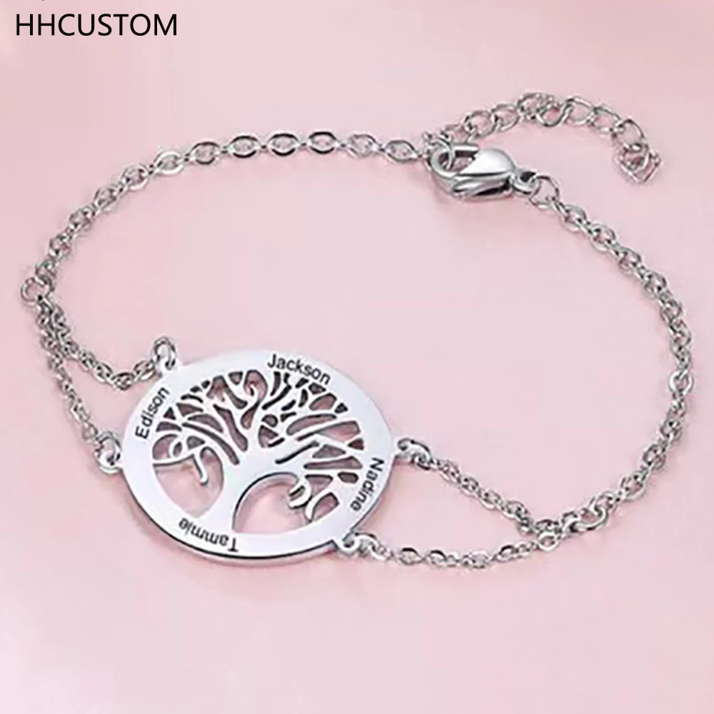 Персонализированные Древо жизни Браслеты с гравировкой имени Нержав...