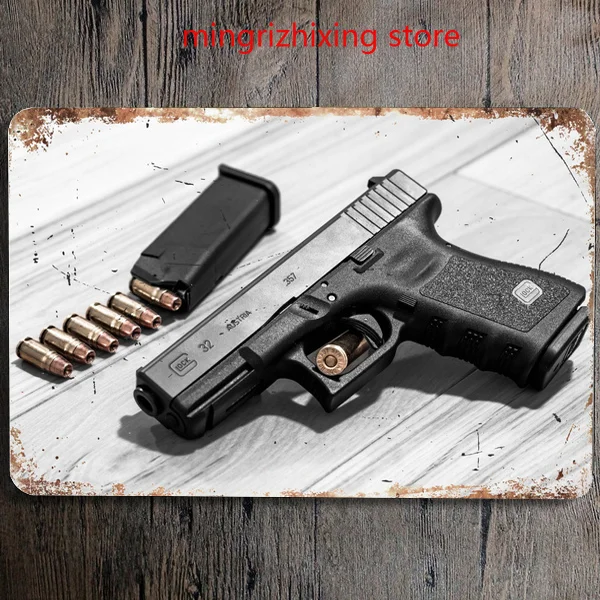 Винтажный металлический пистолет Glock, Оловянная вывеска, для паба, клуба, кафе, бара, дома, художественное украшение, Постер, вывеска пистолета