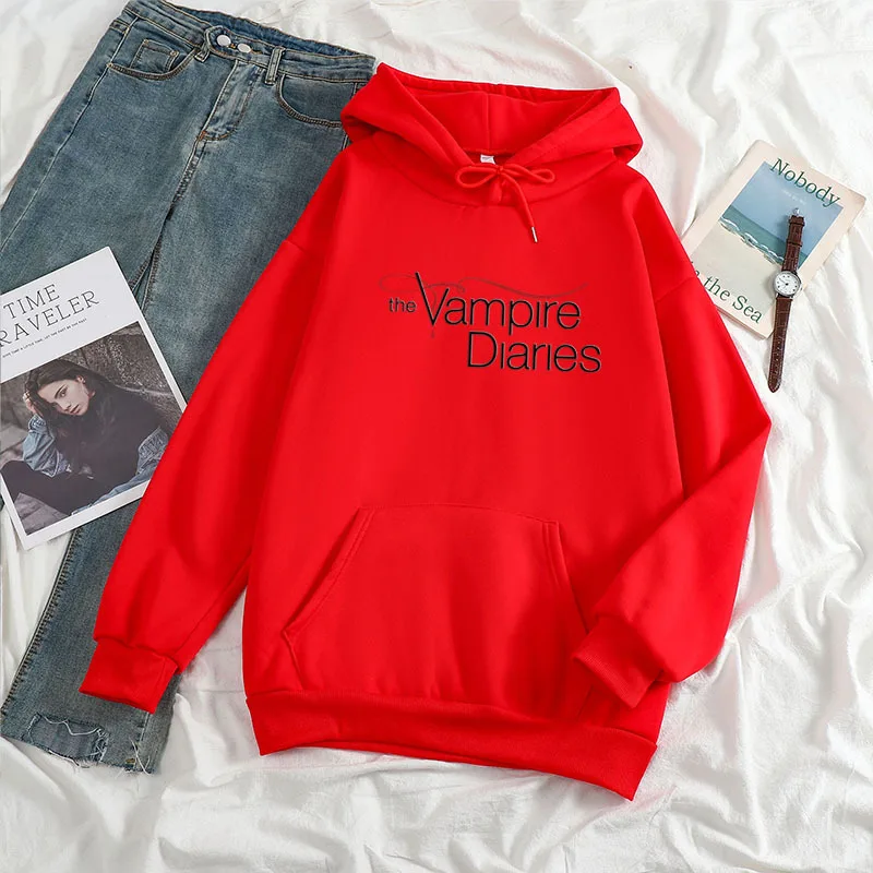Женская зимняя толстовка с капюшоном и принтом дневников вампира Y2K
