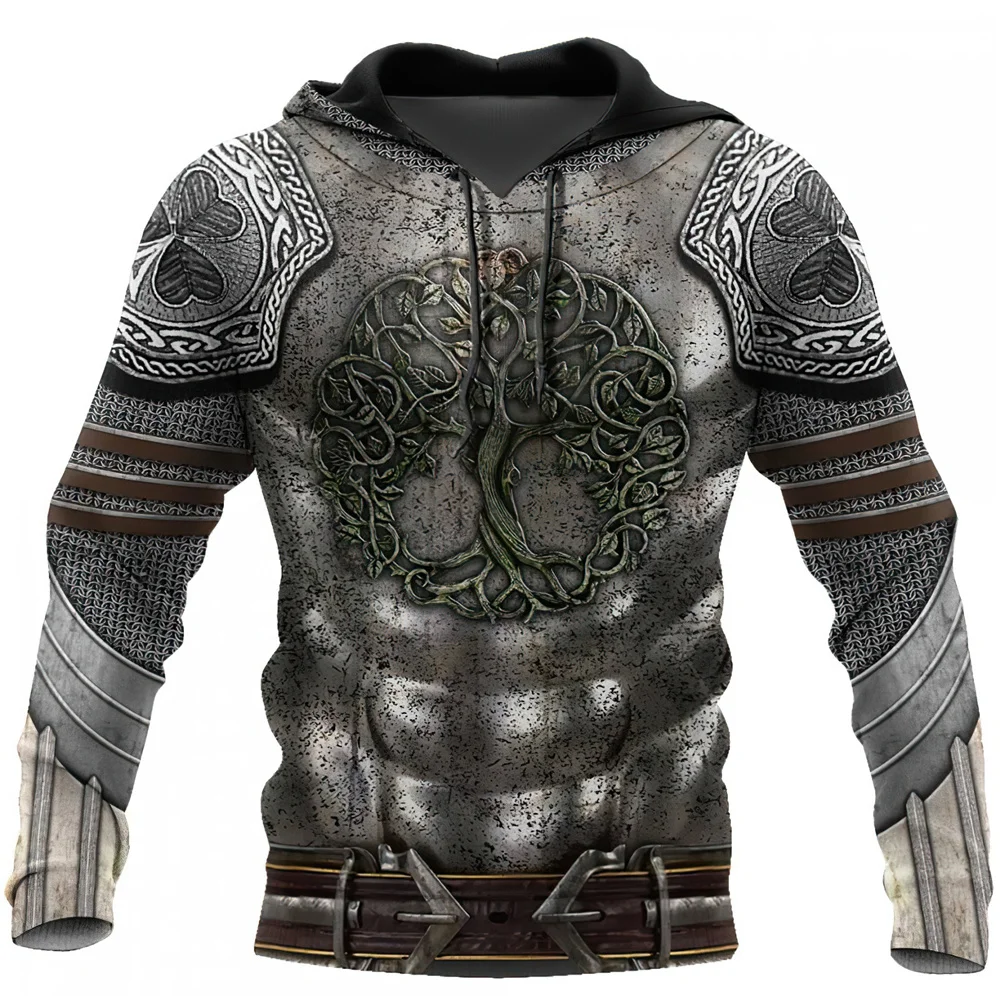 Крутая Мужская Осенняя Толстовка символ викингов Crusader с 3D рисунком, косплей, уличная одежда с капюшоном