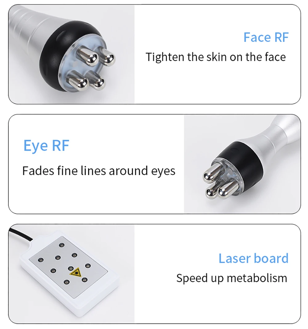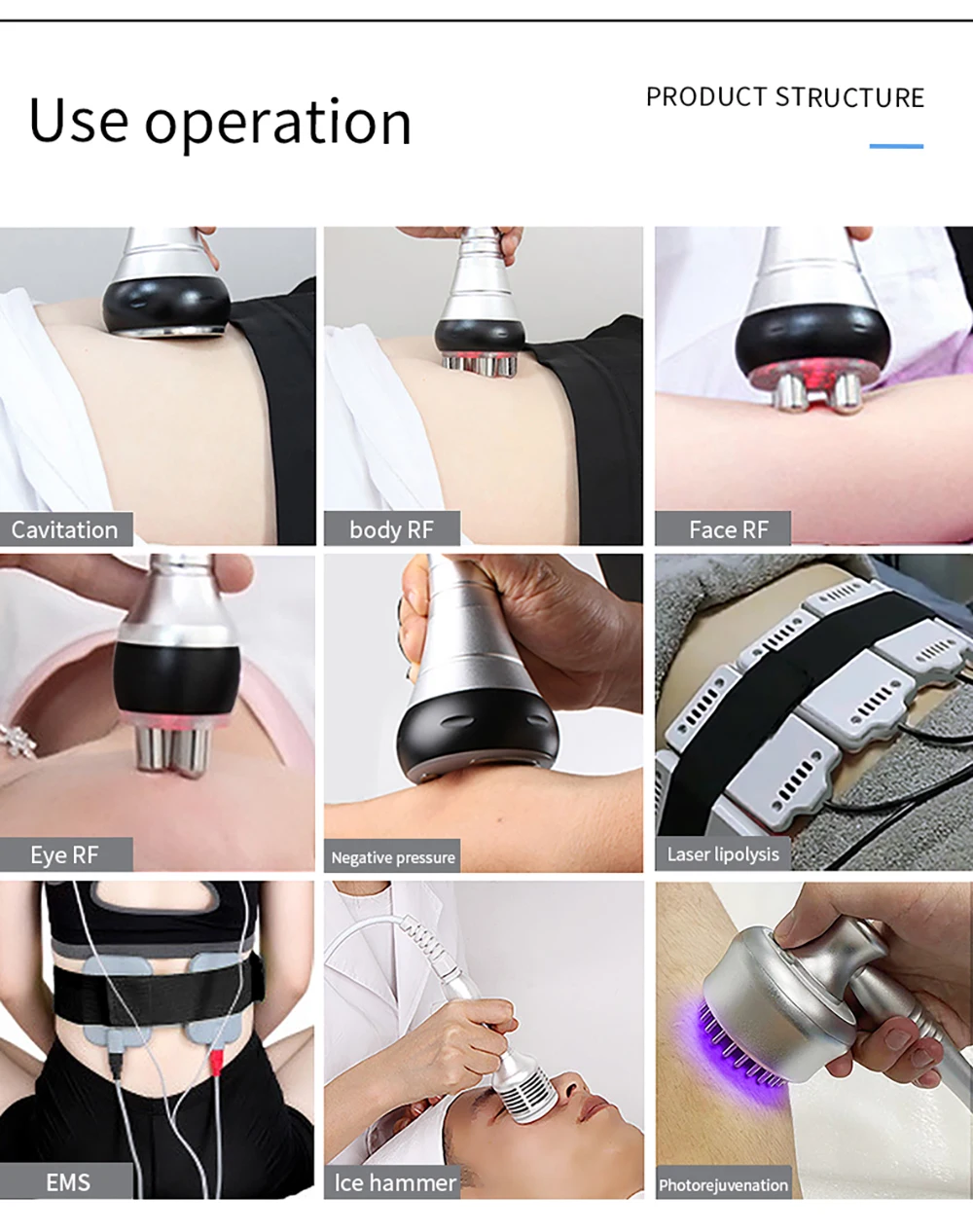 Параметры продукта:Мощность: 250-300 ВтНапряжение: 110V-240V/50/60HZУльтразвуковая частота: 40K/60W/150VЛазерный светильник Длина волны: 635-650 нм, 5 мВт милливатт/a, в общей сложности 60 светильник s 300 милливаттОтрицательное давление значение: -80KPA потока, 650 мм РТ 15L, 66V, 60 ВтЭкран Размер: 7 дюймов сенсорный экран Экран интерфейсТрехуровневый зонд: 1 МГц/30 Вт/66 вЧетырехуровневый зонд: 1 МГц/40 Вт/66 в6-уровневый зонд: 1 МГц/60 Вт/66 вХолодильная температура ледового зонда: 0-5 градусовЦветной светильник с длиной волны красный: 620-630NM, синий: 460-465NM, Зеленый: 520-525NM, оранжевый: 600-610NM, Фиолетовый: 400-420NM, голубой: 515-532NM, белый: 6000-6500K80 кГц burst fat head:Высокочастотная ультразвуковая кавитация 80 кГц подходит для тела с большим воздействием, которая может эффективно сжигать калории, взрывать воду и жировые клетки и уменьшать жировые клетки, для достижения эффекта удаления жираРадиочастотный трехполюсный зонд:Подходит для глаз и лица. Он может нагревать кожные коллагеновые волокна до 45 градусов до 65 градусов. Коллагеновые волокна сразу же уменьшаются, чтобы растянуть свободные морщинки кожи. В то же время, он стимулирует распространение кожного коллагена и способствует утолщению и уплотнению дермы для удаления морщин. Уменьшает шрамы, восстанавливает эластичность кожи и блеск, добивается цели укрепления и удаления морщинРадиочастотные четырехуровневые и шестиуровневые зонды:Подходит для лица, рук, бедер и тела, растворяет жир, лимфодренаж, затягивает кожу, повышает эластичность кожи, может направлять жировые клетки с направленной радиочастотной функцией вывода В жировом слое, и ускоряет передачу тепла на лишний жир в организме через потовые желоба, печеночно-кишечное кровообращение и лимфатическое кровообращение токсинов из организма для растворения жира(Каждый зонд имеет различные функции, вы можете проконсультироваться со службой поддержки клиентов)1. Сначала очистите кожу, затем используйте специальный гель или эфирные масла для похудения;2. Снимайте все металлические украшения при использовании машины;3. Избегайте слишком долгого нахождения в одном месте. Избегайте использования на костях;4. После использования машины непрерывно в течение 1 часа, пожалуйста, позвольте машинеОтдых около 10-15 минут;5. При использовании щупа с разрывом жира у некоторых гостей появляется шум в ушах, это явление является нормальным.6. Не используйте дезинфекционные средства для очистки зондов, рекомендуется использовать влажное полотенце или хлопок;Посылка включает:1 * Многофункциональный хост1 * три полярных RF головки для лицевых и глазных вокруг1 * четырехполюсная RF головка для лица и Bod1 * многополярная RF головка для тела1*80 кГц кавитационная головка1 * вакуумная двухслойная RF головка1 * IPL светодиодный Омоложение кожи2 * EMS плата микро тока8 * лазерная доска для снижения жира1 * Вилка питания AU/EU/US/UK1 * руководство на английском языкеПримечание: Этот продукт не предназначен для диагностики, смягчения, лечения, лечения или предотвращения любых заболеваний
