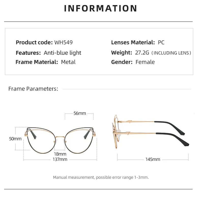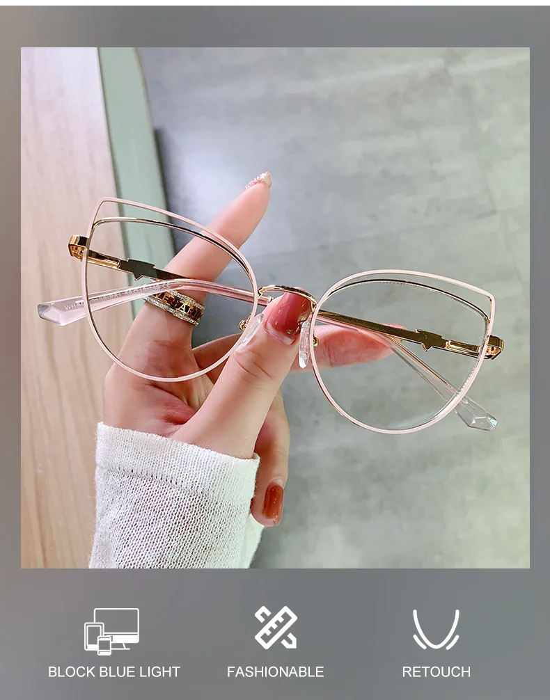 Очки для близорукости для женщин с защитой от сисветильник Роскошные Модные прозрачные металлические очки для компьютера модные очки кошачий глаз-2.