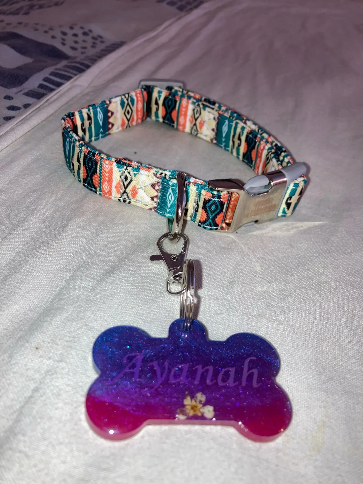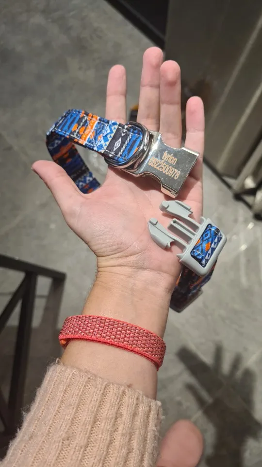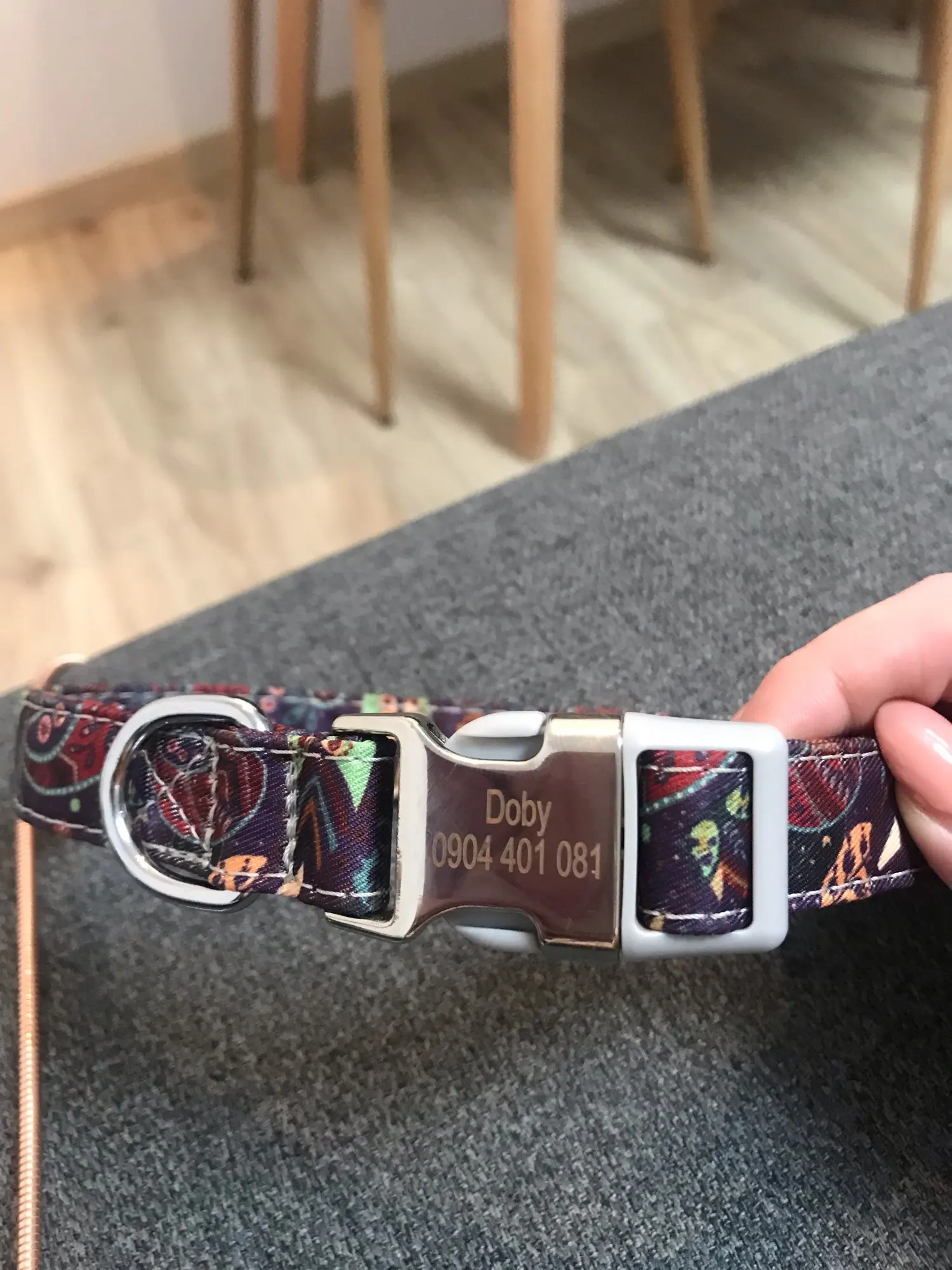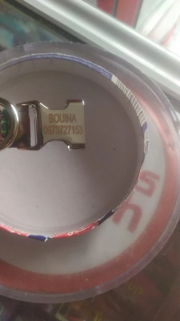 Сильное ожерелье с хорошей отделкой. Я попросил его выгравировать с именем моего питомца, и он выглядит идеально. Если мне придется что-то отрицательное, это пластиковые элементы крючка, которые в принципе кажутся стойкими, но создают мне Небезопасность.