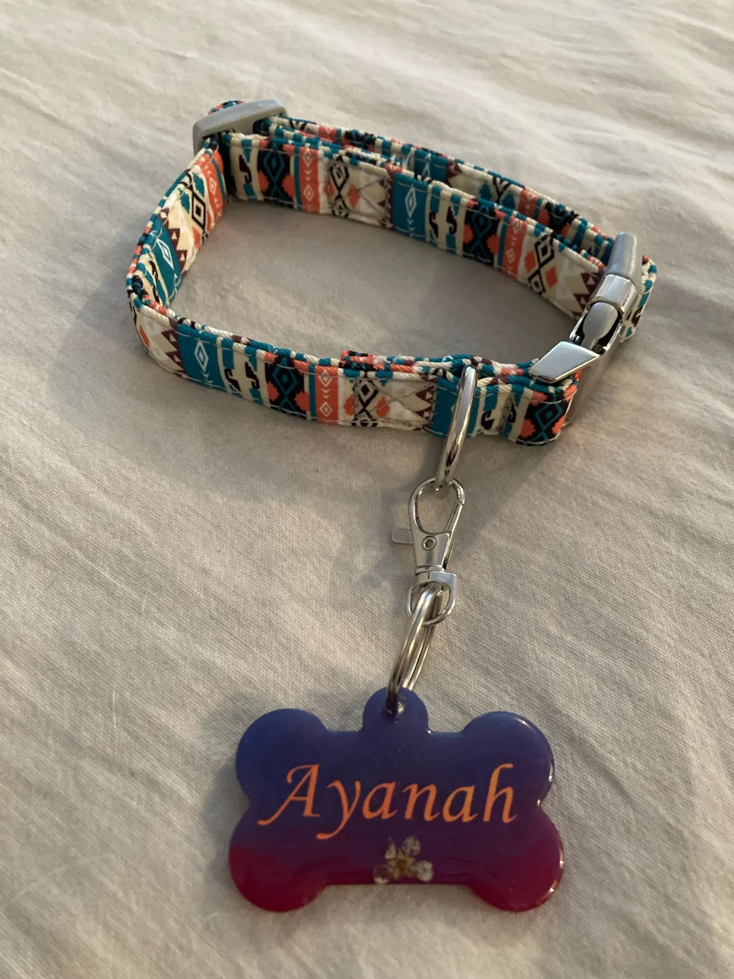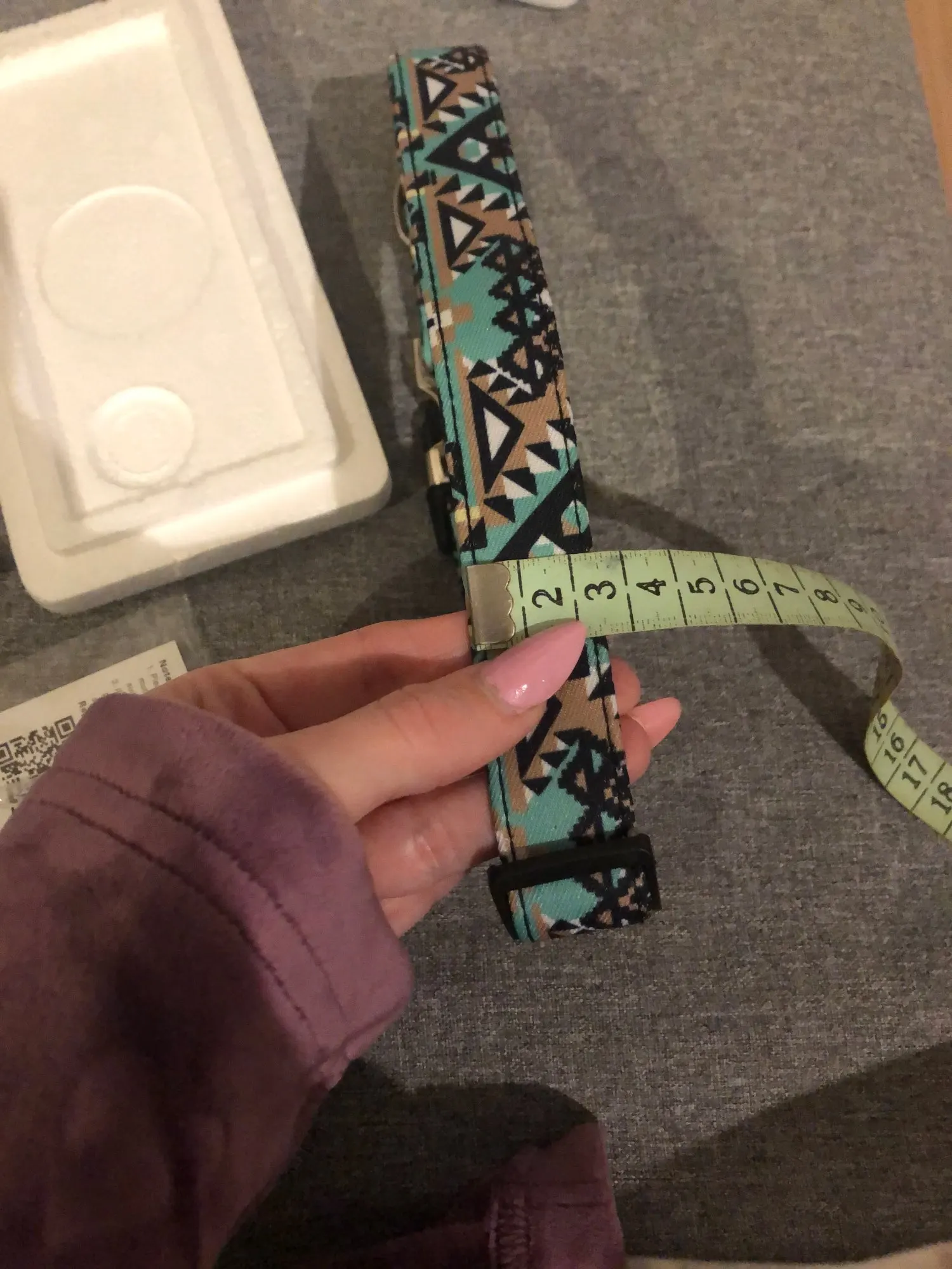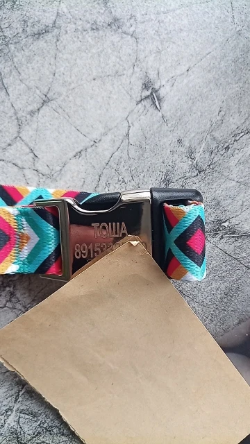 отлично! точно как в описании. чуть промахнулась с размером. на шею 30см М пришлось утянуть до минимума. имя и номер указали на бирке. застёжка металлическая. огромное спасибо!