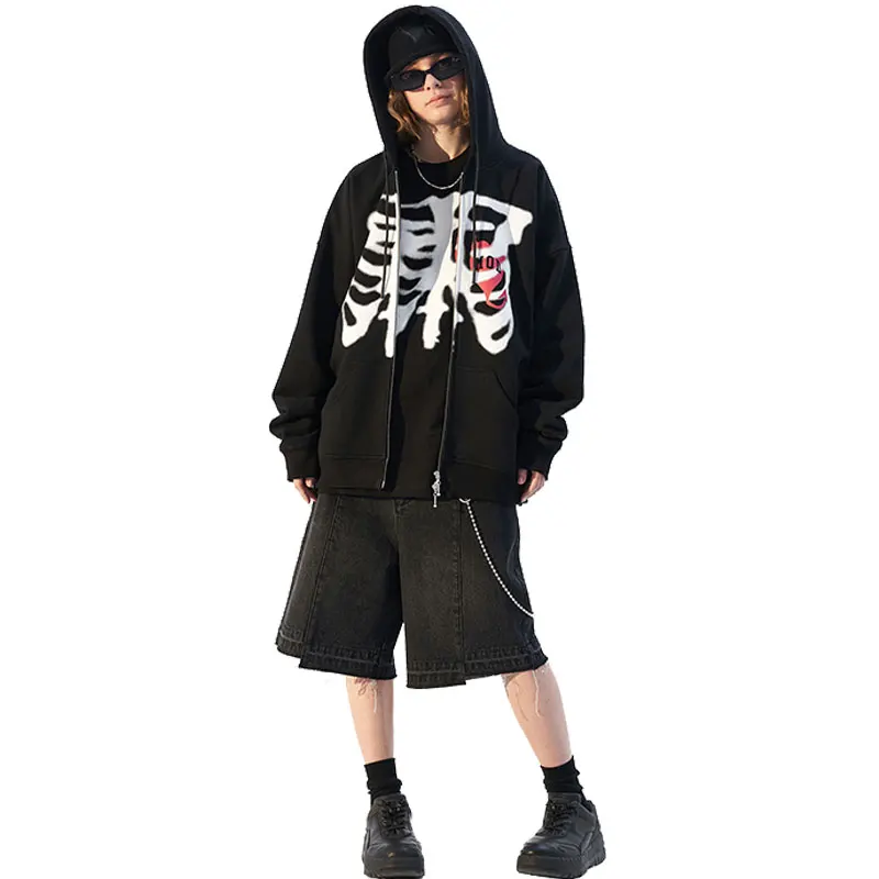 Женская толстовка в стиле панк со скелетом, толстовка с капюшоном н...