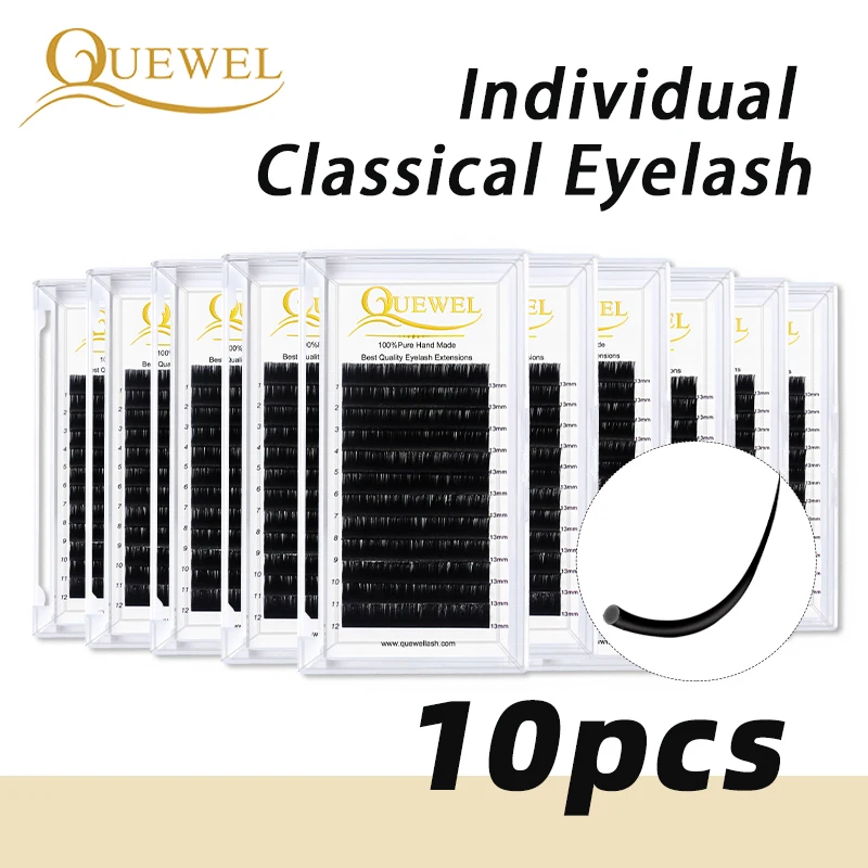 Quewel 10 чехловПартия Накладные норковые ресницы для наращивания 12 рядов индивидуальные шелковые ресницы профессиональные Круглые ресницы оптовик