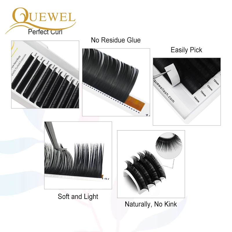 Индивидуальные ресницы QUEWEL изготовлены из шелкового материала премиум класса А и 100% ручной работыРесницы такие же мягкие и легкие, как наши собственные ресницы. Не вредите глазам.