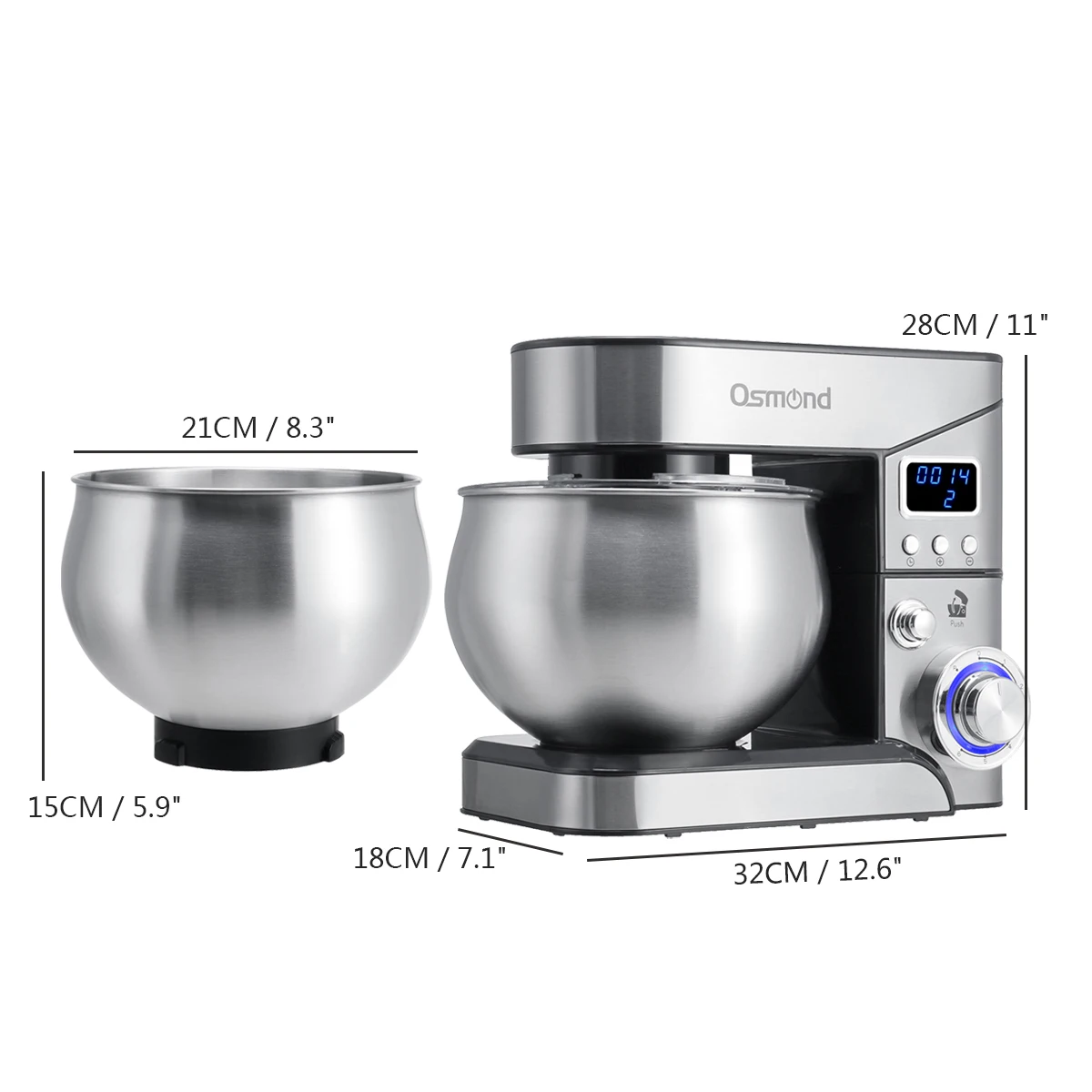 Особенности:● Интеллектуальный цифровой дисплей. Предустановка и регулировка скорости● 6 скоростей + пульс6 оптимизированных скоростей достаточно мощные для практически любой задачи или рецепта● 5л миска из нержавеющей стали для смешивания до 1,6 кг теста● Модернизированный 1300 Вт полностью Медный двигатель делает его более мощным и долговечным● Полностью металлические аксессуары разминают, смешивают, бьют, взбивают, все в одном● Нескользящие всасывания гарантируют его стабильность● Конструкция с наклонной головкой обеспечивает чистый доступ к чаше, чтобы легко добавить ингредиенты для рецепта● Стильная кухня, необходимая для вашего современного образа жизни● Прозрачный чехол для брызг, сохраняет еду и одежду аккуратнойХарактеристики:Модель: SC-205EБренд: OSMONDЦвет: серебристыйВилка: штепсельная вилка европейского стандарта 220 ВМощность Медного двигателя: 1300 ВтЕмкость чаши из нержавеющей стали 304: около 5л/169 унцийМатериал: нержавеющая сталь 304Размер хост-машины (Д * Ш * В): около 32 см * 18 см * 28 см/12,6 "* 7,1" * 11"304 Размер чаши из нержавеющей стали (Д * В): около 21 см * 15 см/8,3 "* 5,9"