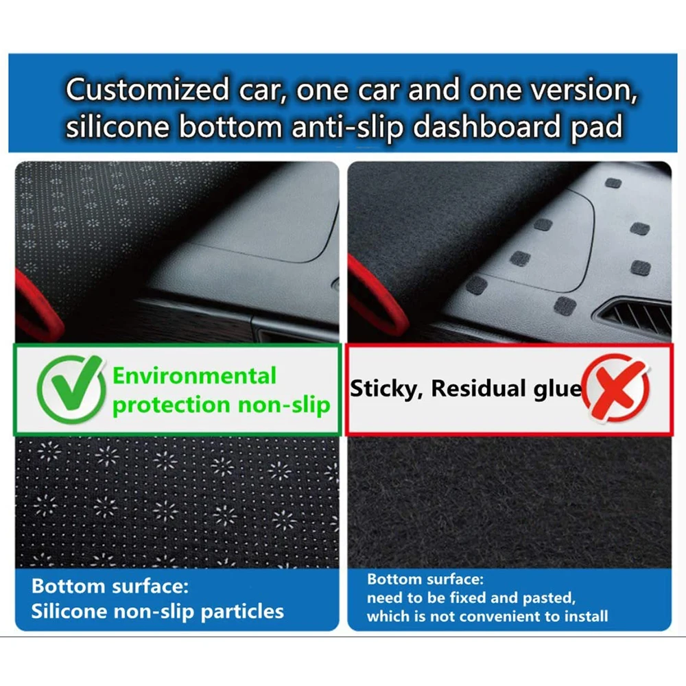 -- Это коврик для приборной панели, который уникален тем, что он имеет нескользящую заднюю часть. Передовая ткань не только уменьшает и поглощает блики солнечного света, но и идеально подходит для украшения интерьера.