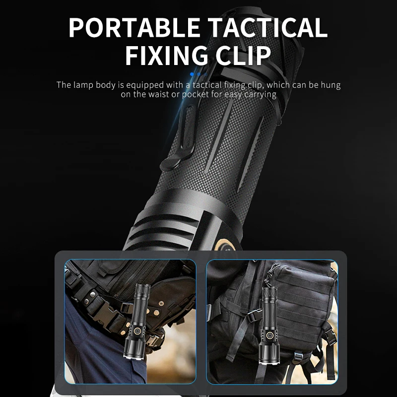 Фонарик Poweful XHP199.9, 26650 лм, с зажимом, телескопический зум,...