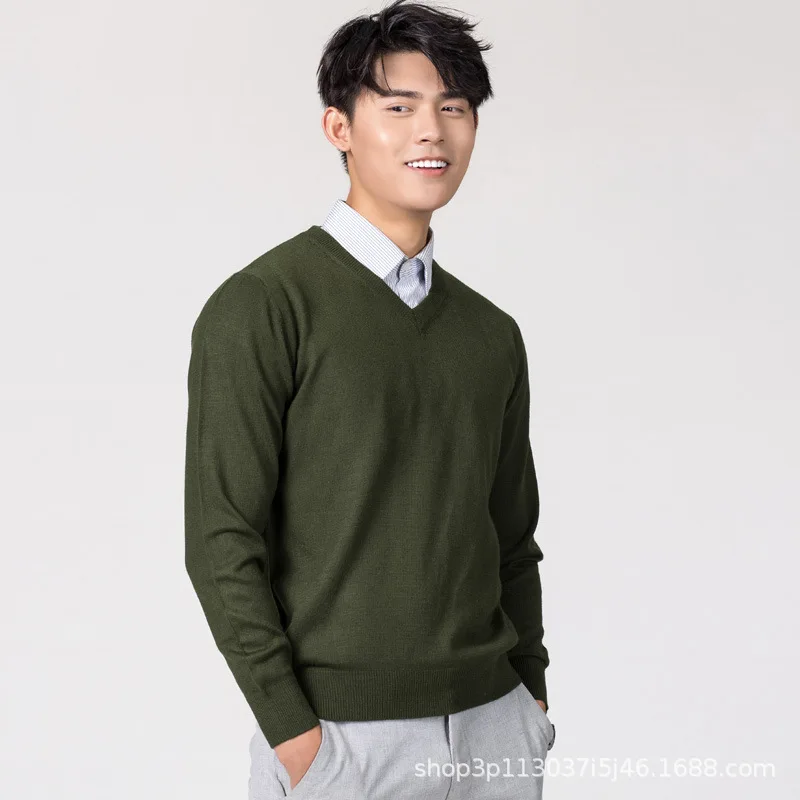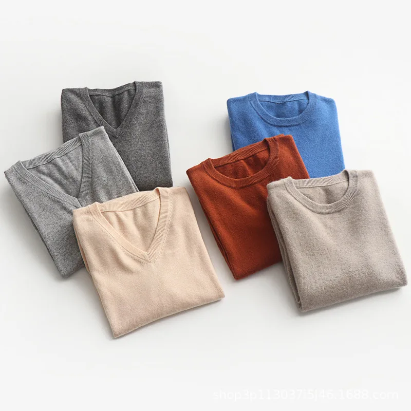 Пуловер мужской из кашемира и шерсти, зимний, с V-образным вырезом,...