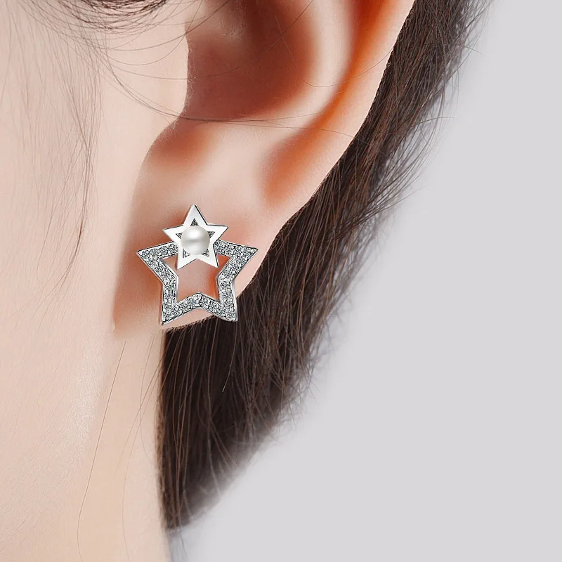 Женские серьги-гвоздики с жемчугом, из серебра 925 пробы