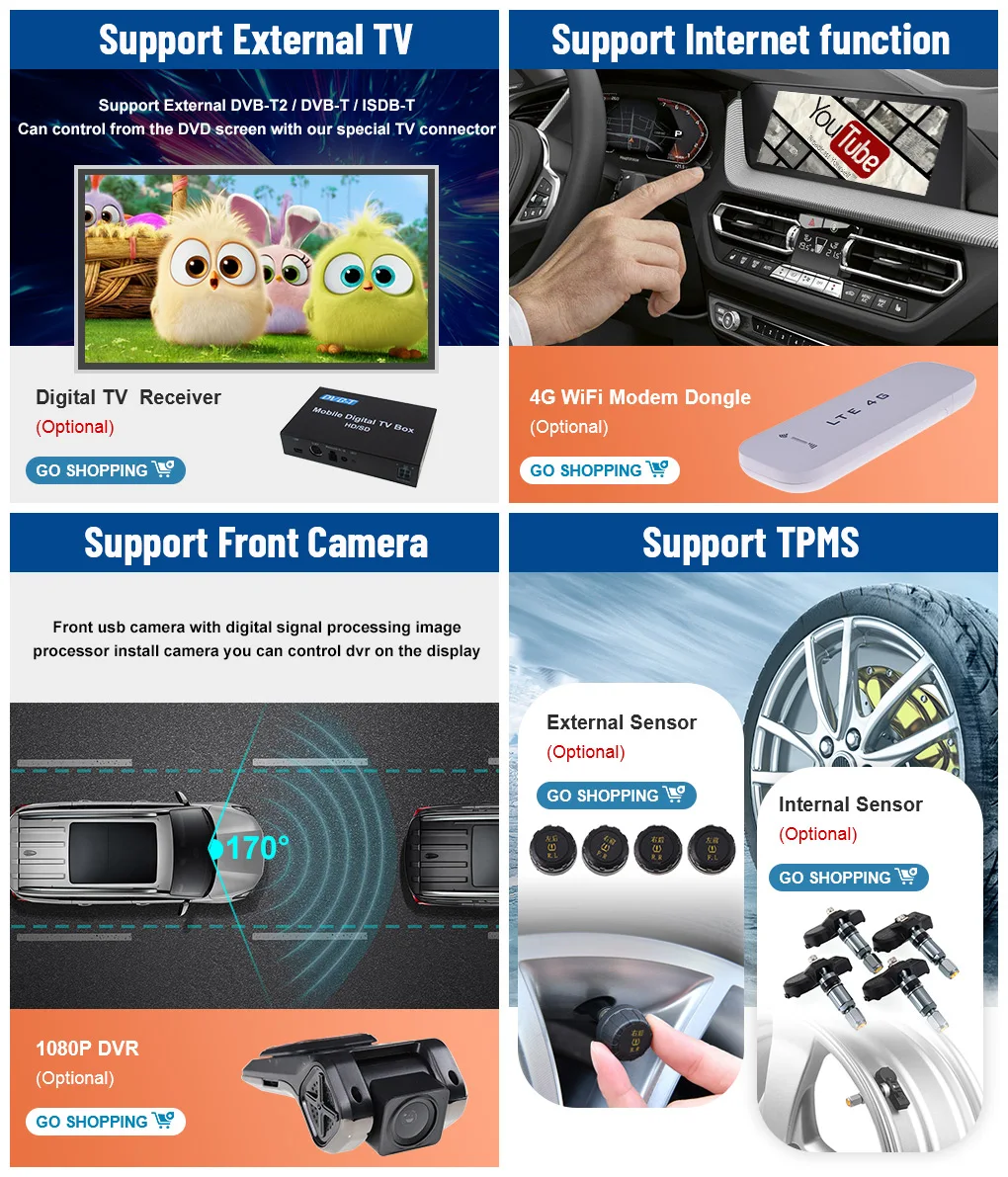 1. Климат будет отображаться на новом дисплее после установки.2. Встроенный беспроводной Carplay (опционально)3. Встроенная 360 камера (опционально)4. Встроенный чип DSP (входит в комплект)5. Поддержка сети 4G /5G и WIFI