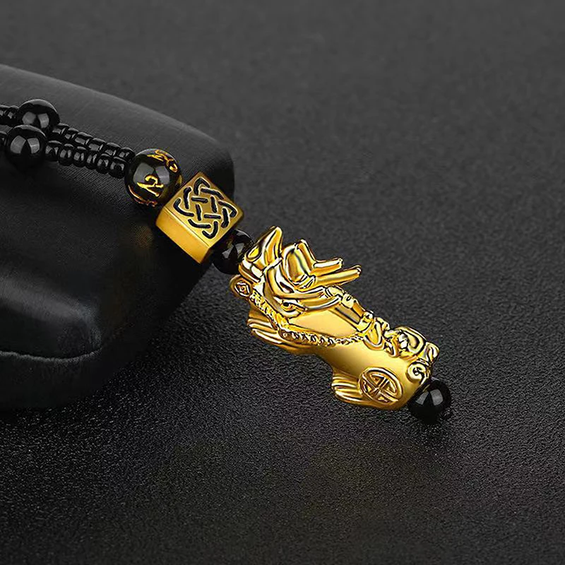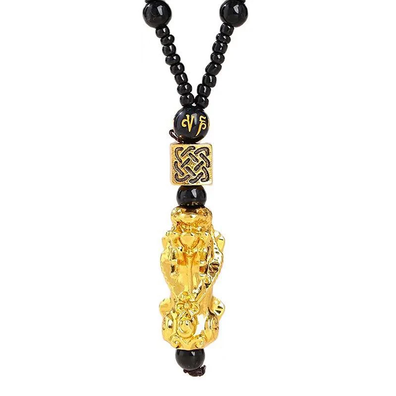 Ожерелье с подвеской Obsidian Pixiu, имитация 24-каратного золота, ...