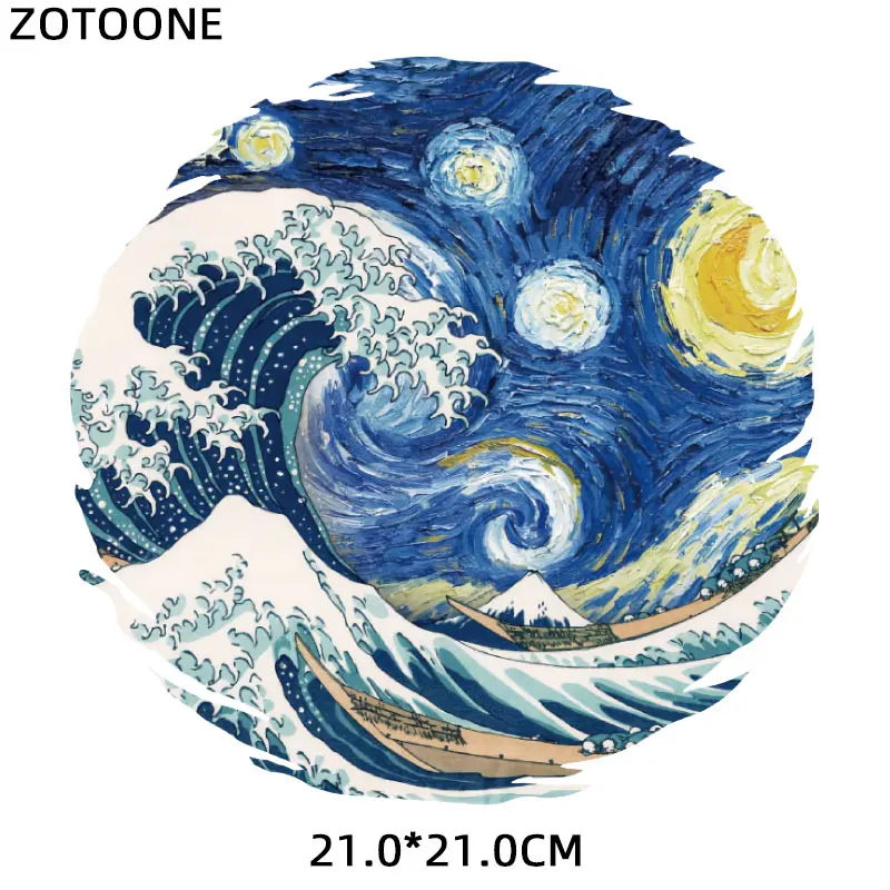Нашивки с волнами Ван Гога для одежды, термоклейкие наклейки для одежды, аппликации для куртки, футболки