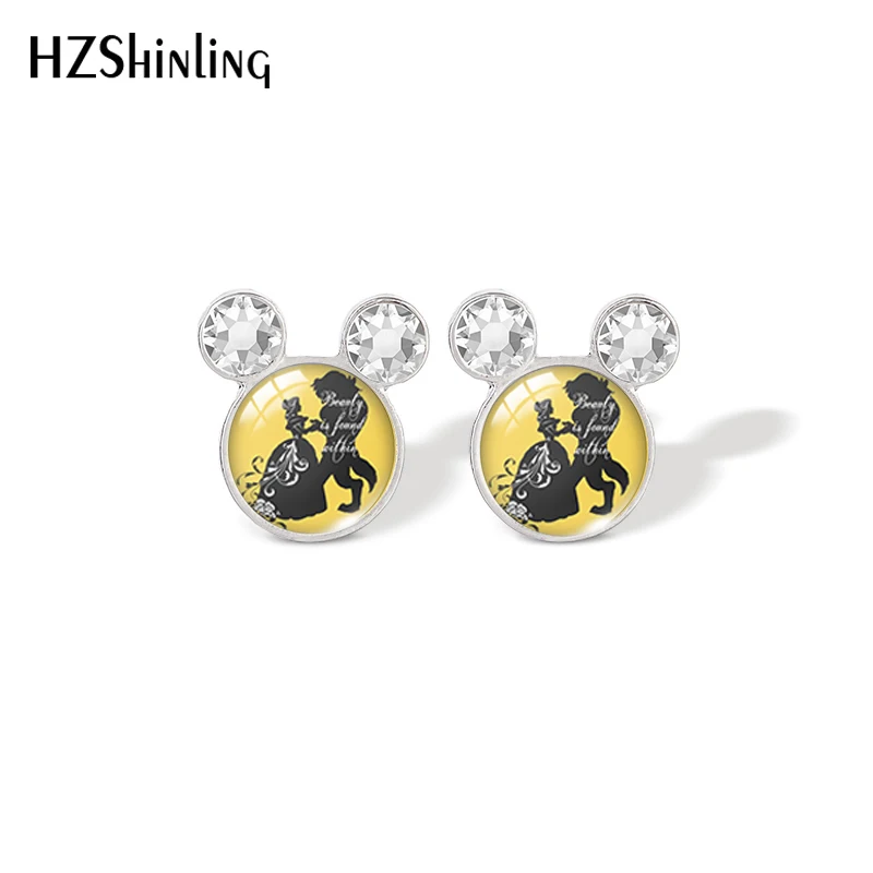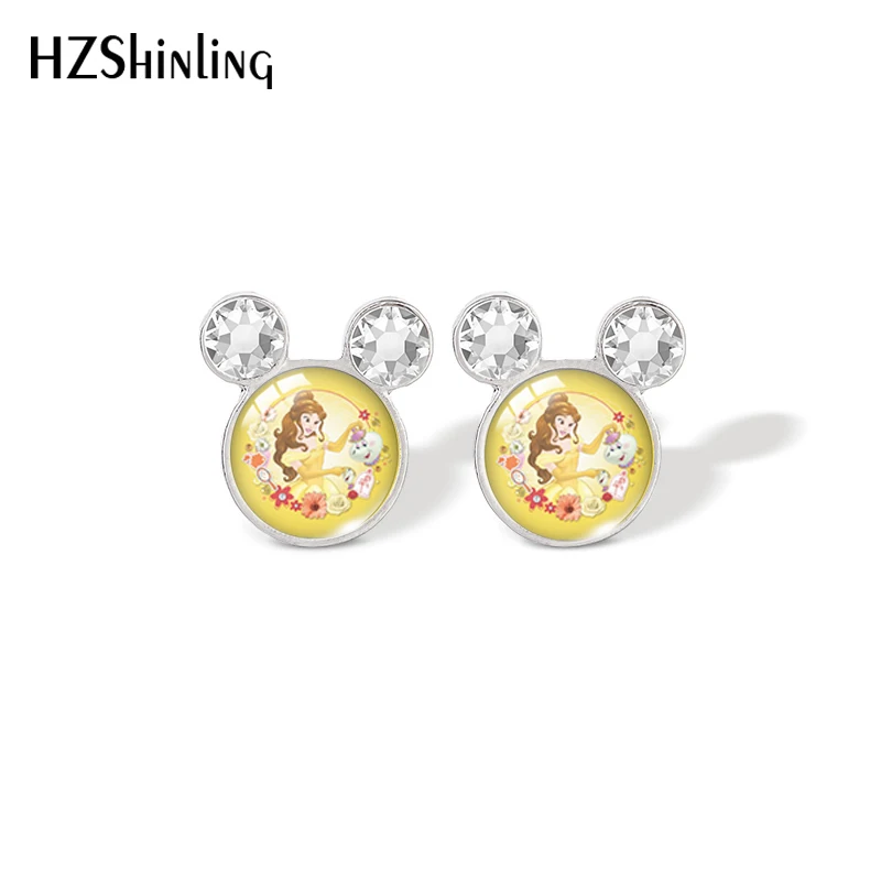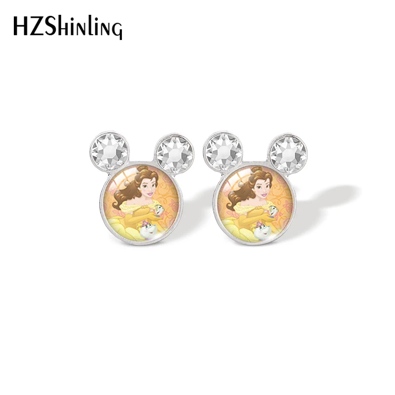 Серьги-гвоздики в виде колокольчика и принцессы из мультфильма Красавица и Чудовище
