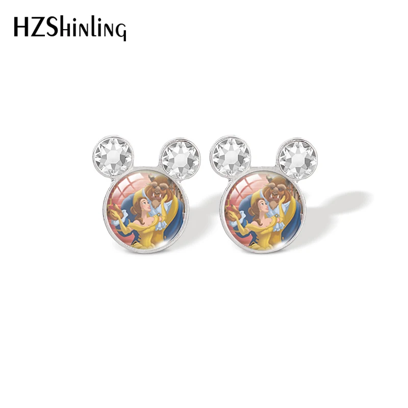 Женские стеклянные серьги-гвоздики с изображением героев Диснея, Ми...