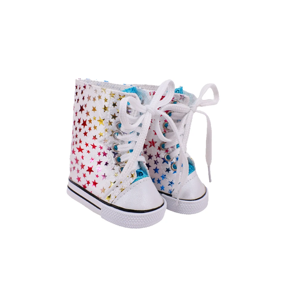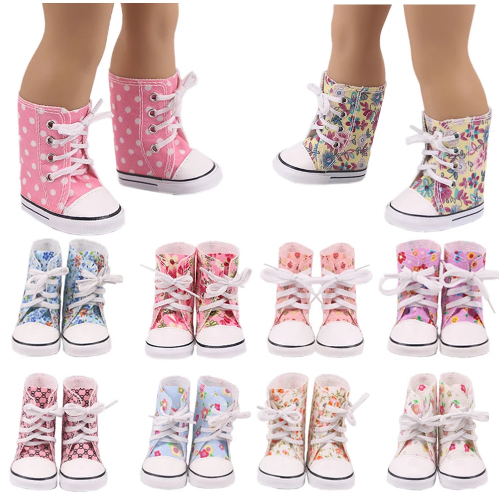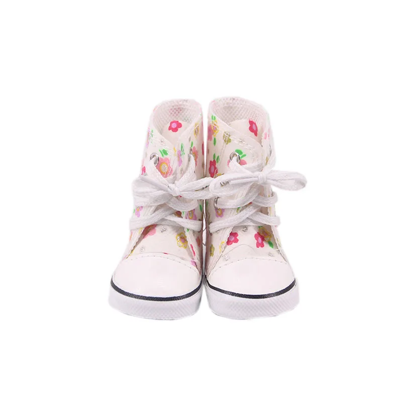 Обувь для кукол 7 см, новинка, модные холщовые ботинки с кружевом и узором, высокие ботинки для кукол 18 дюймов, 43 см, одежда для новорожденных, подарок для поколения