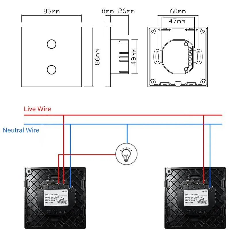 Выключатель настенный сенсорный Универсальный с поддержкой Wi-Fi и ...