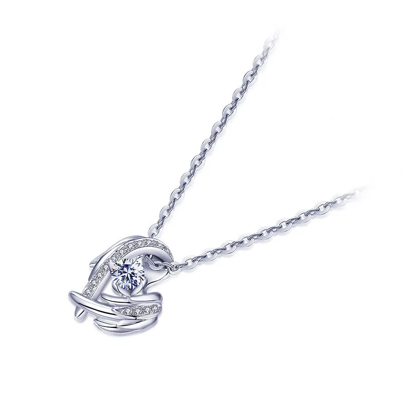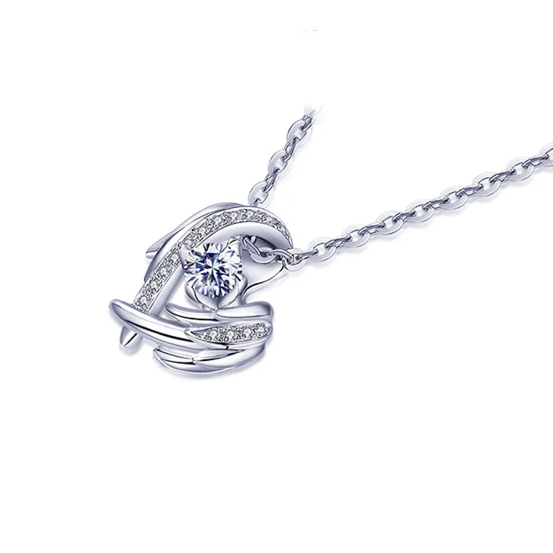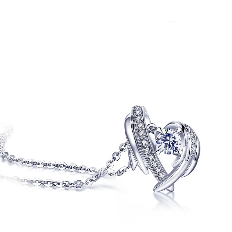 Женское колье из серебра 925 пробы, с подвеской в виде сердца и крыла