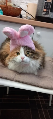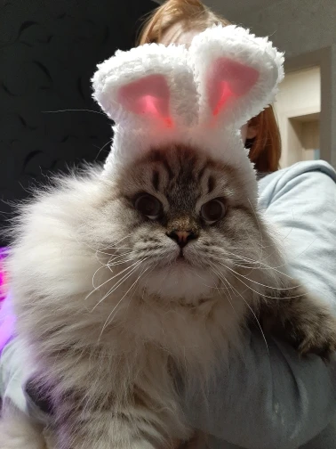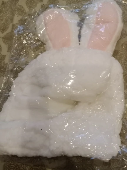 Белая декоративная шапка-кролик была доставлен в почтовое отделение через 32 дня после заказа. Упакована в серый воздушный пакет. Изготовлена аккуратно. Покупалась для кота среднего размера весом 4,5кг. На его голову подошла отлично. Снизу крепится с помощью липучки.